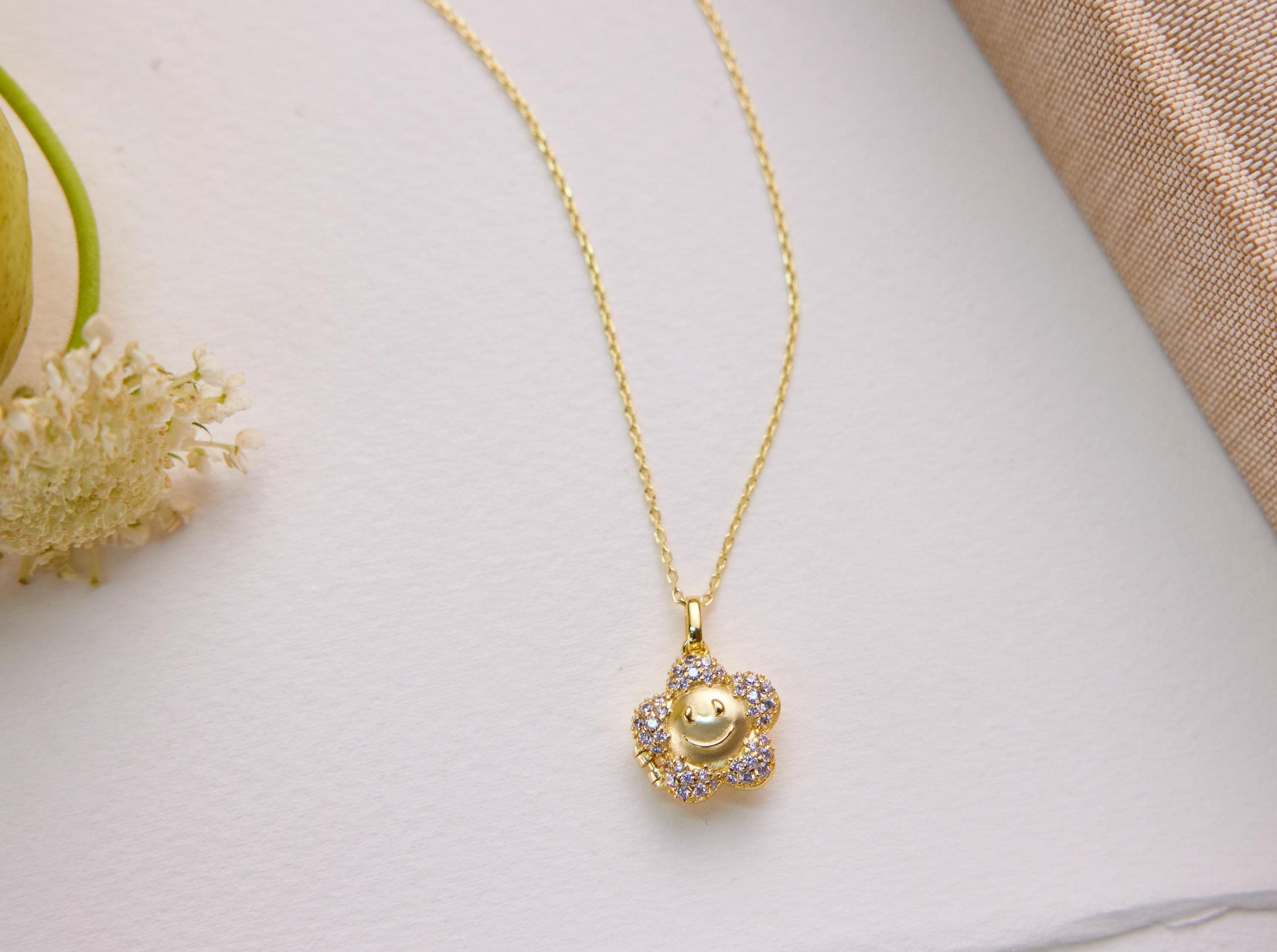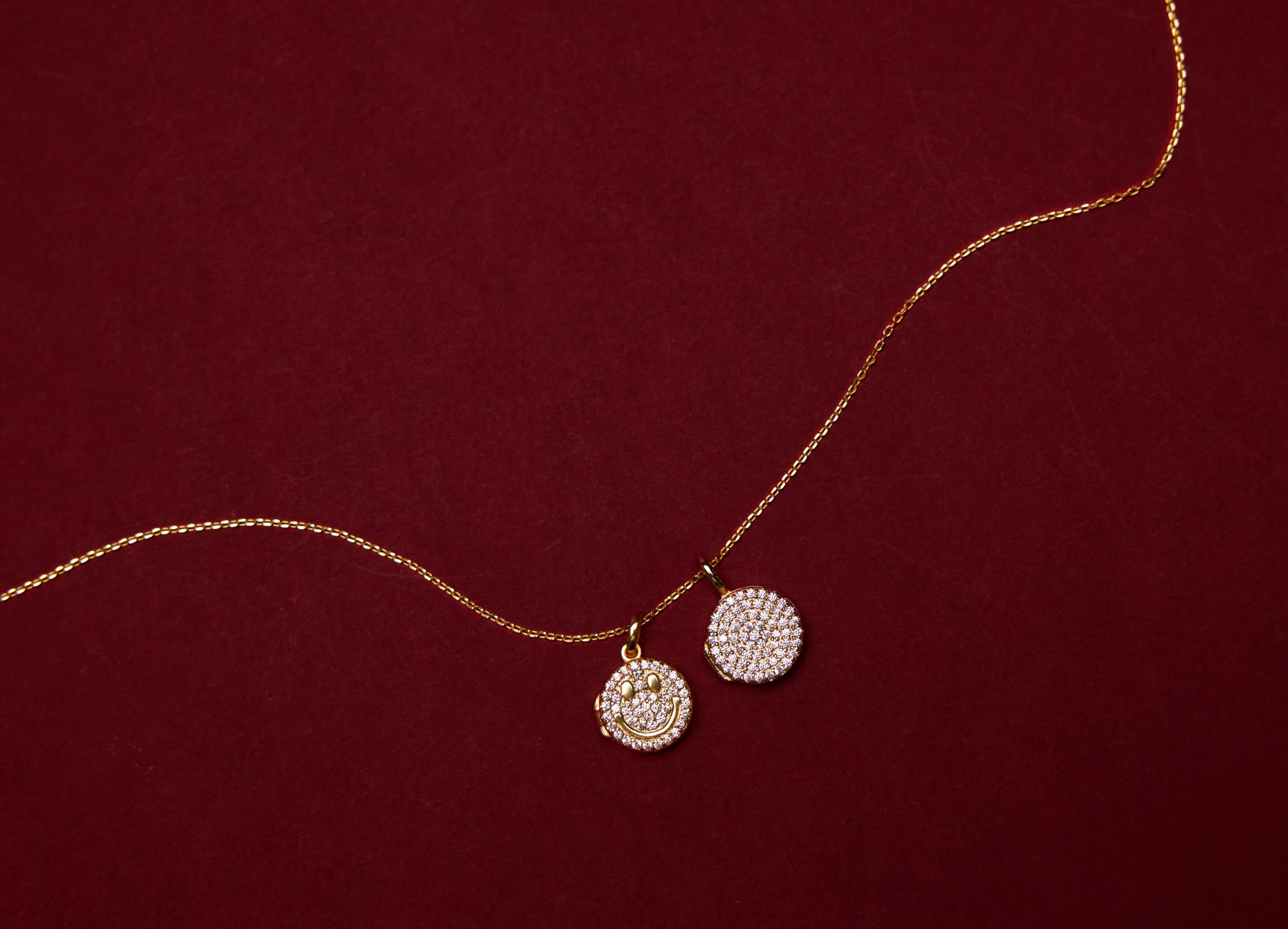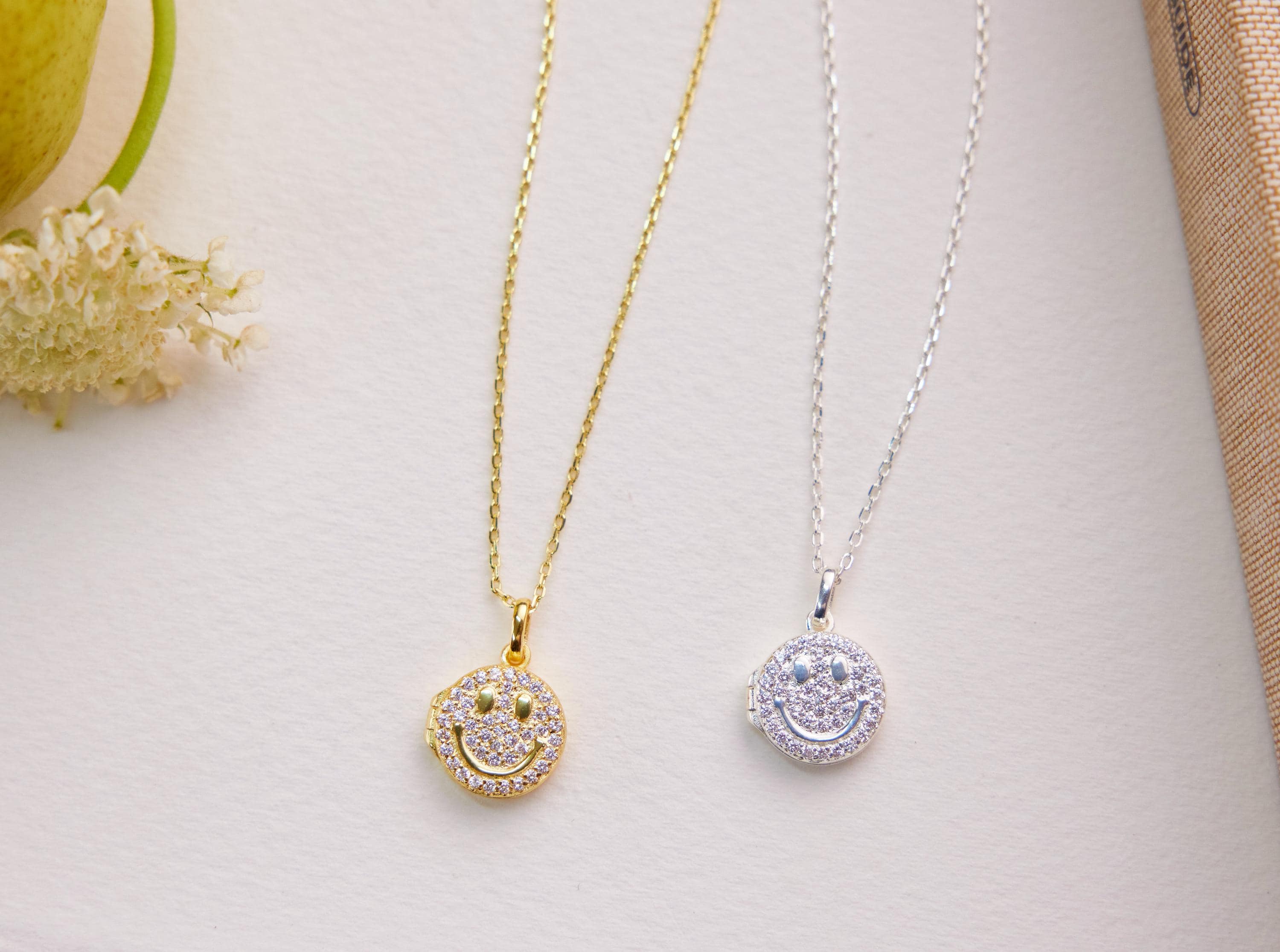 Smile Locket Necklace - Round Diamond Smiley Face Charm
