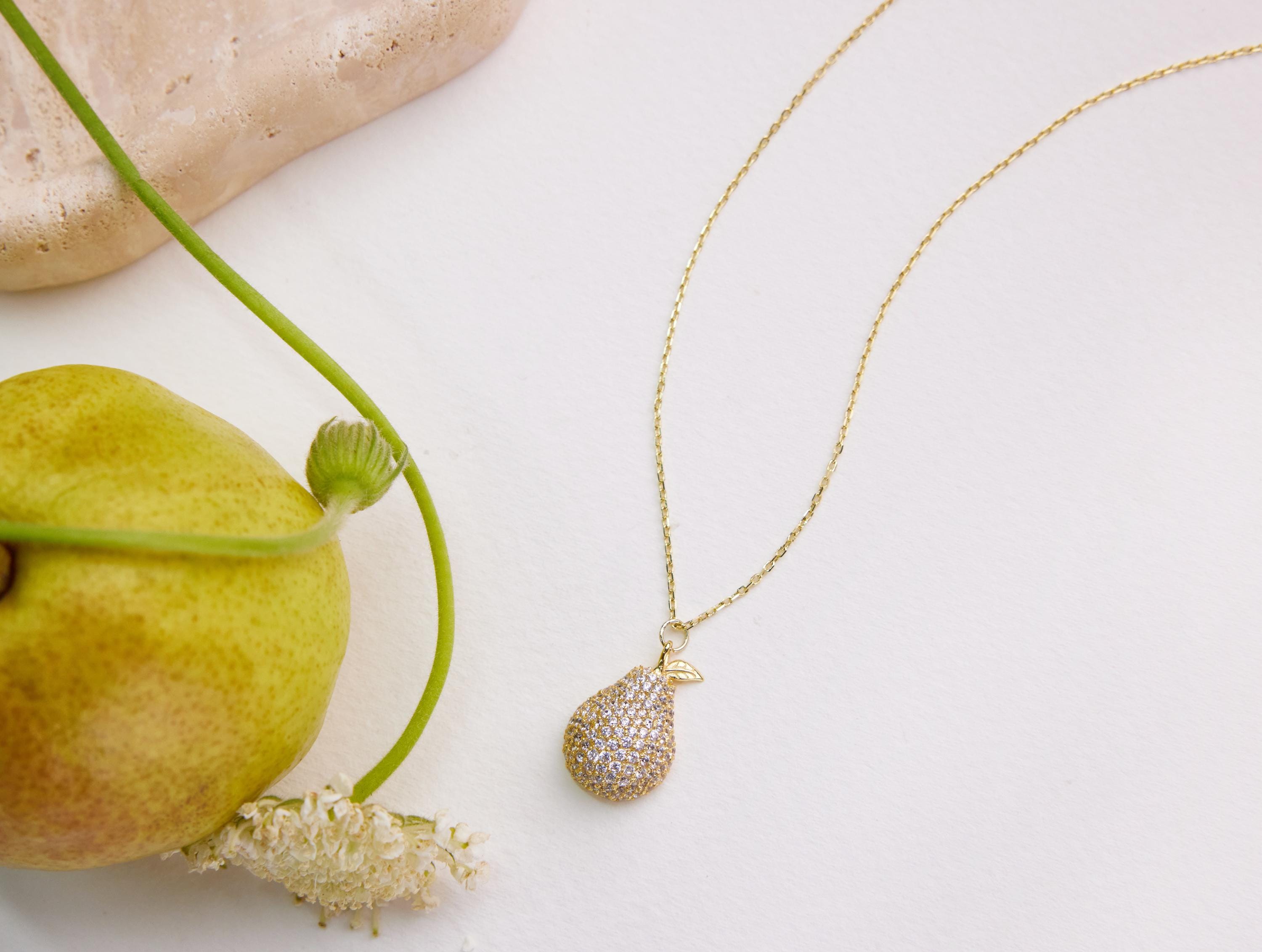 Pavé Cherry Necklace - Dainty Diamond Pendant