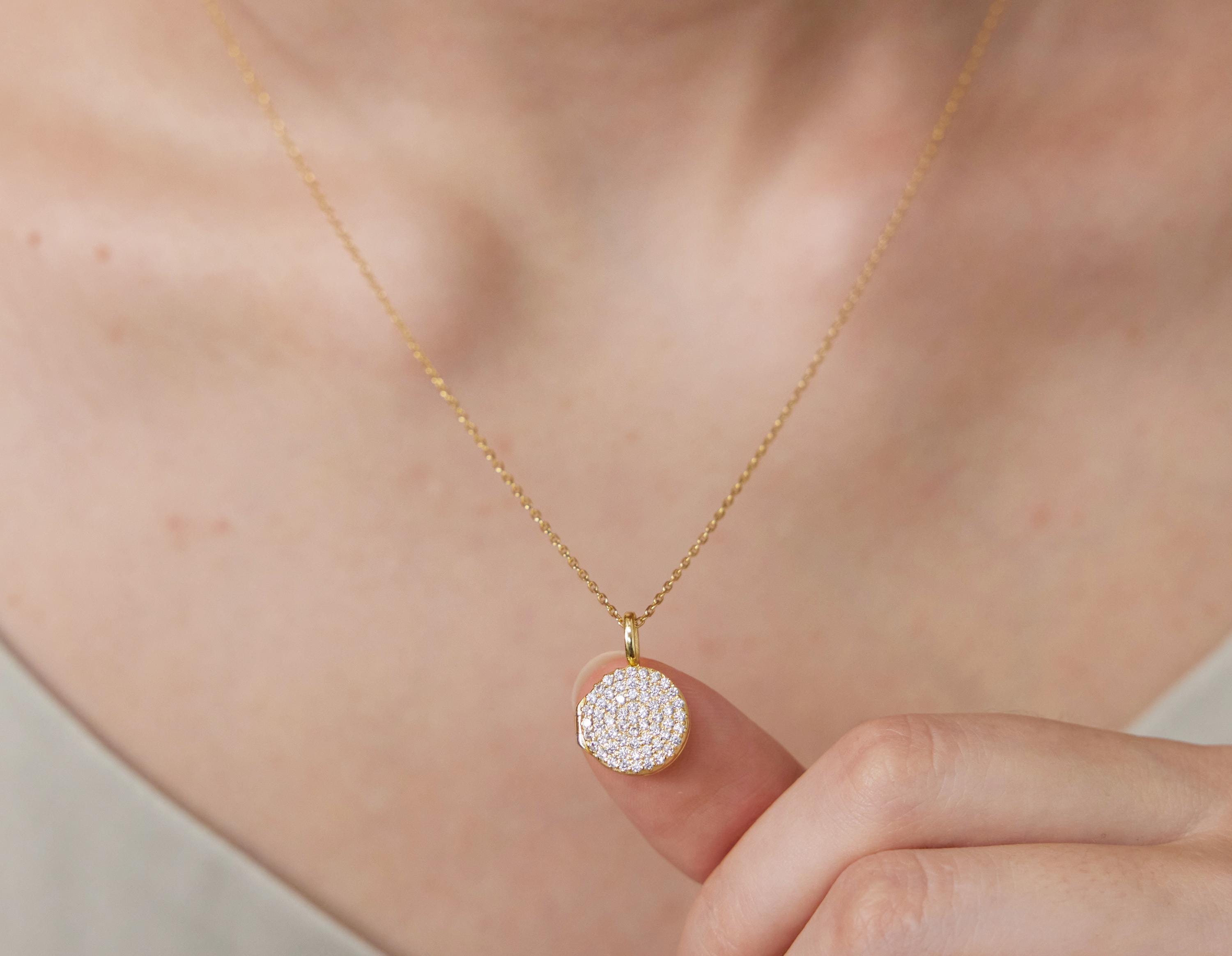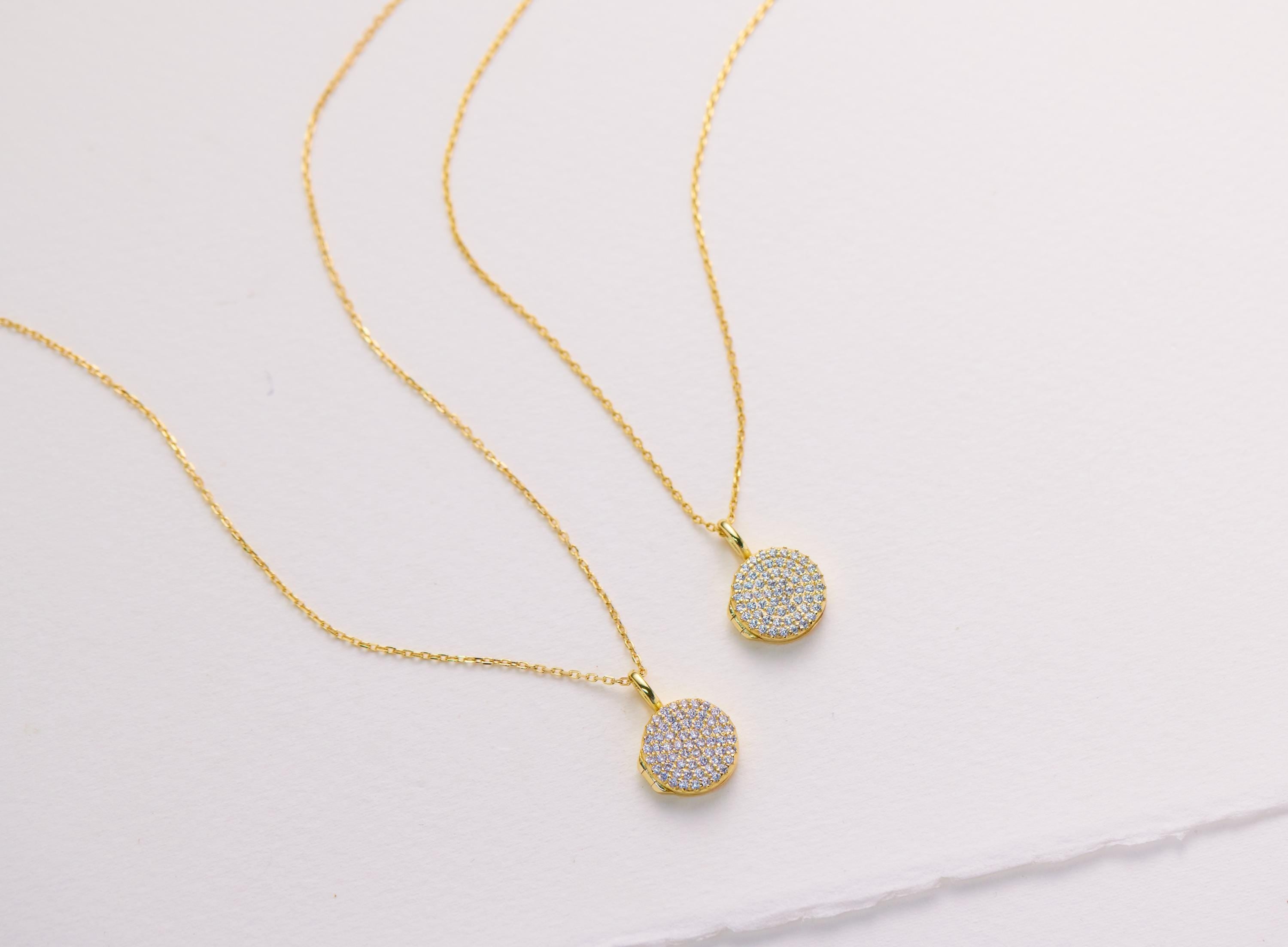 Round Pavé Initial Locket - Personalized Photo Necklace