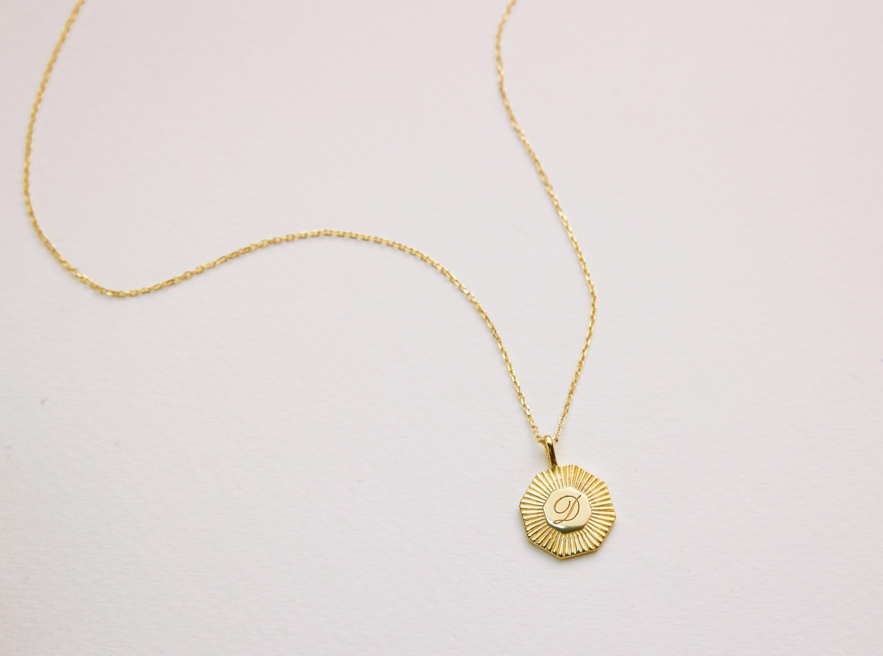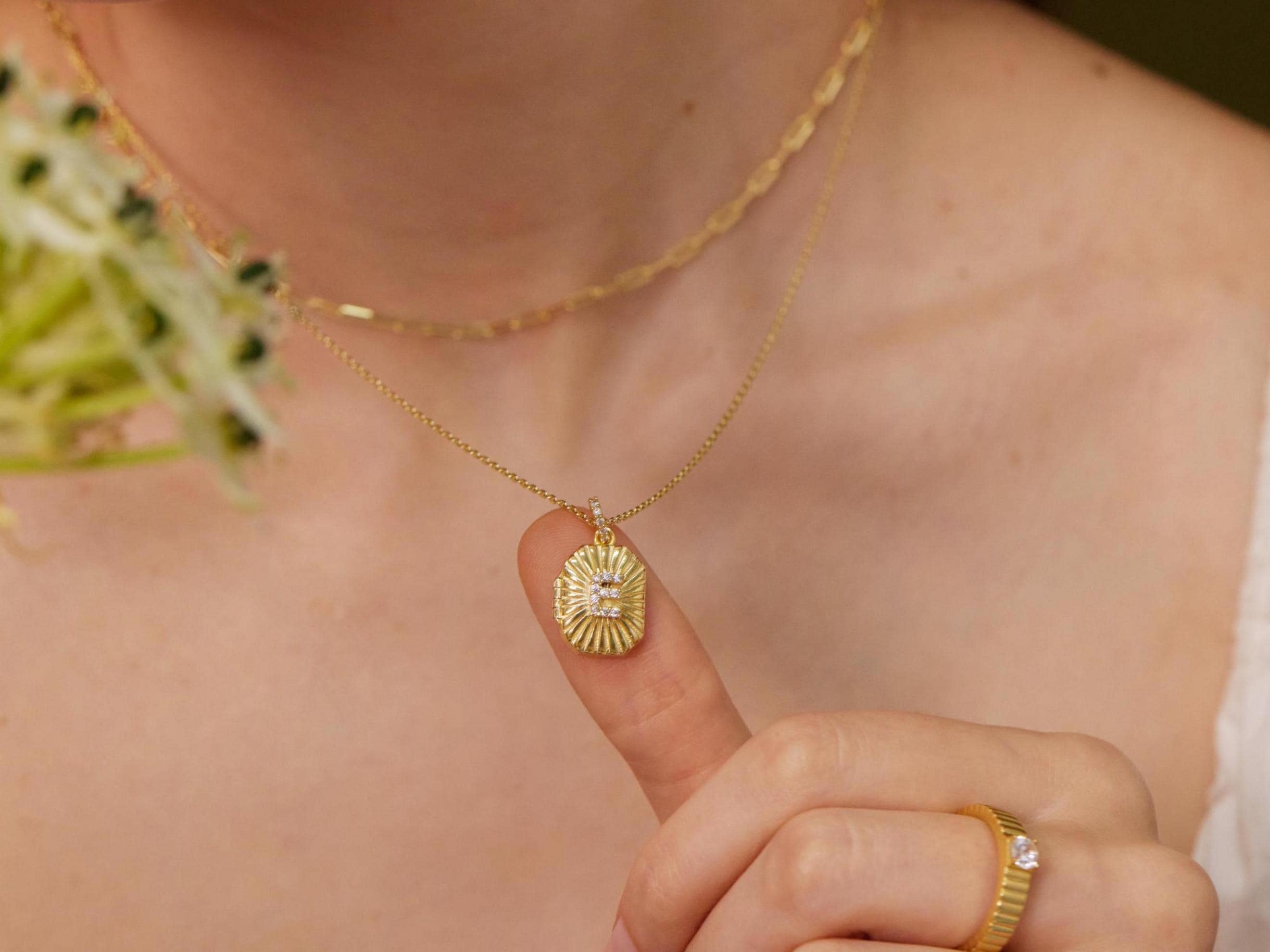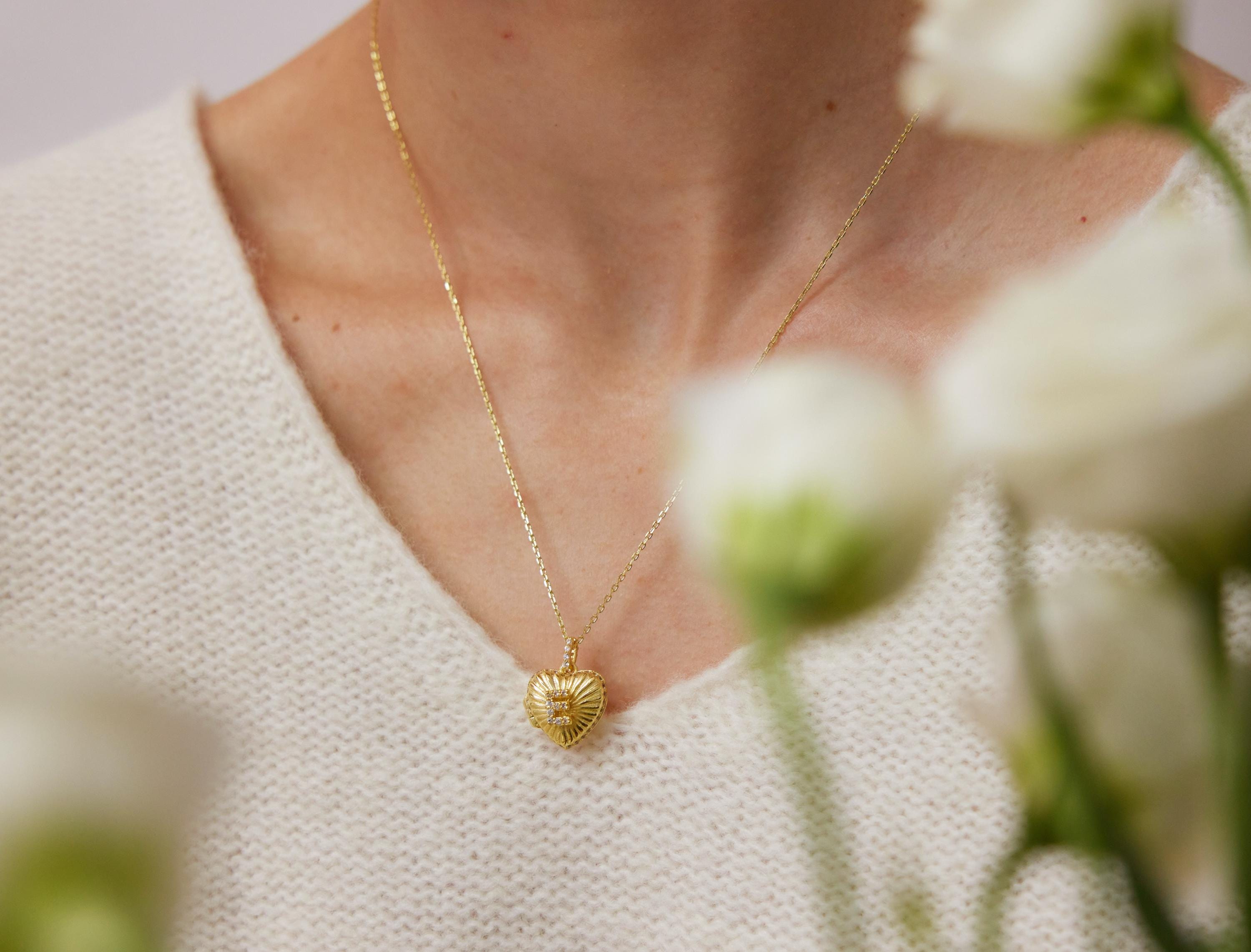 Sunburst Heart Pendant Necklace– Custom Initial With Gold Pavé Charm