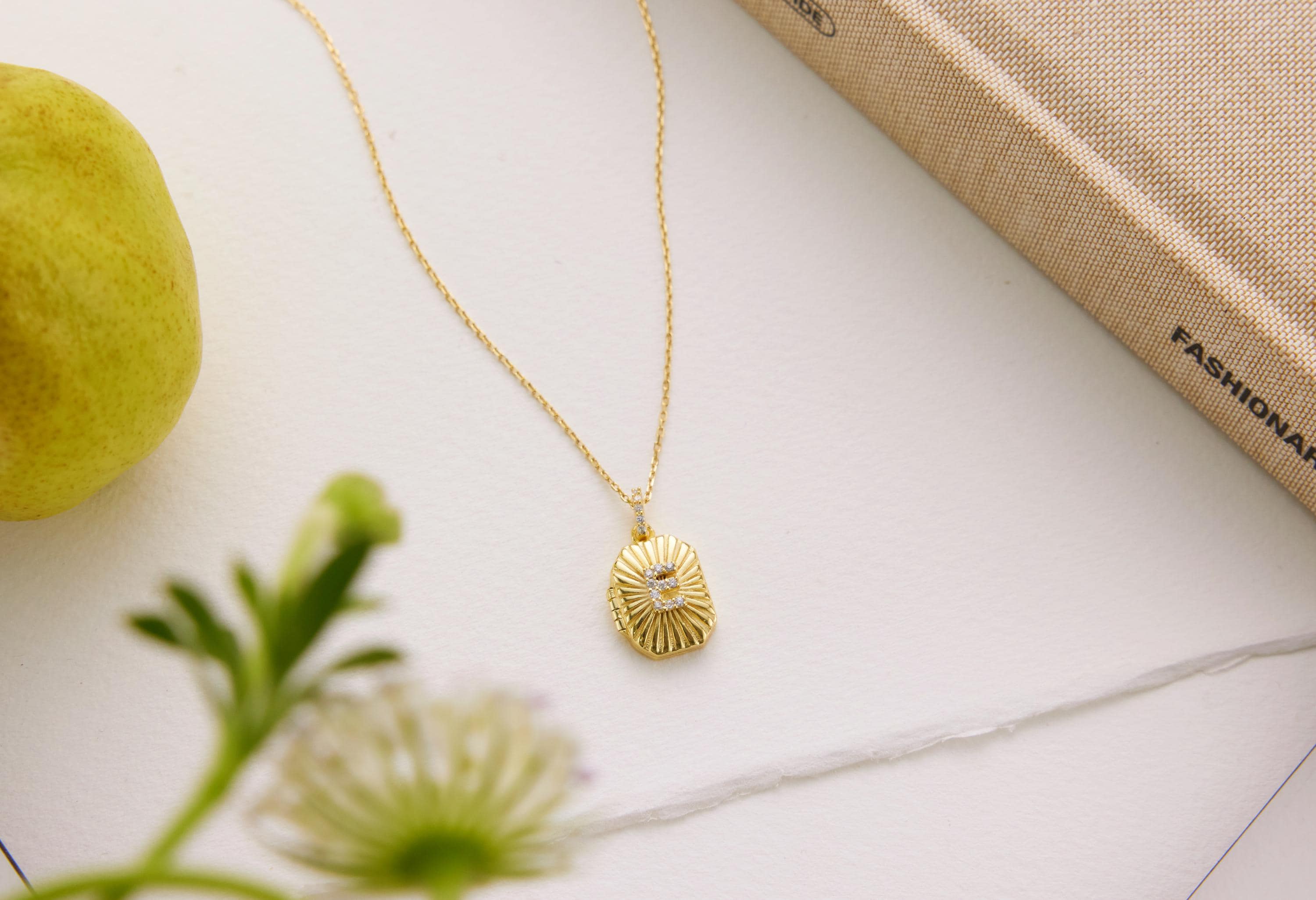 Pavé Sunburst Heart Locket Necklace – Personalized Photo Keepsake