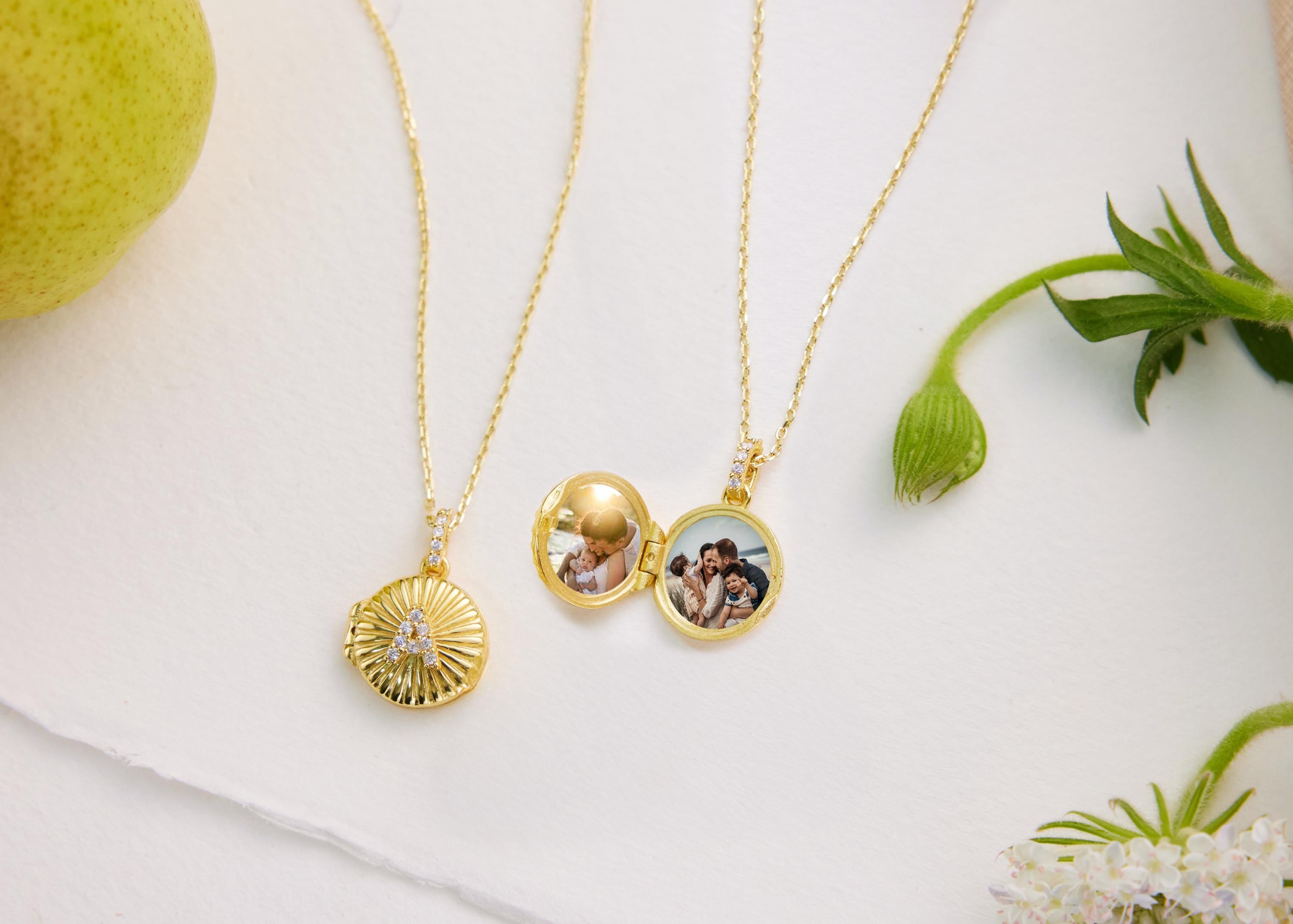 Sunburst Locket – Personalized Birthstone Locket With Gold Photo Pendant