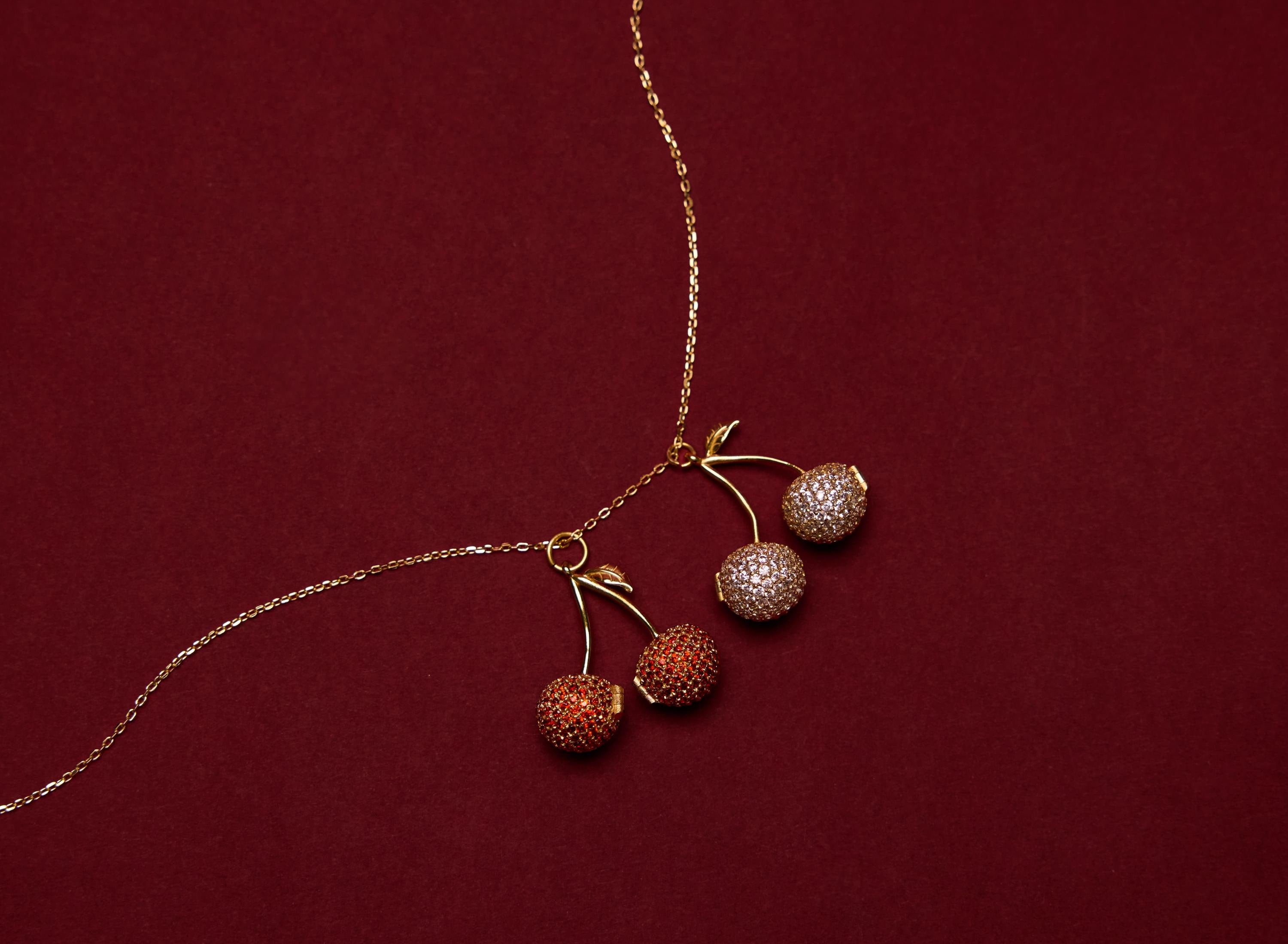 Pavé Cherry Necklace - Dainty Diamond Pendant