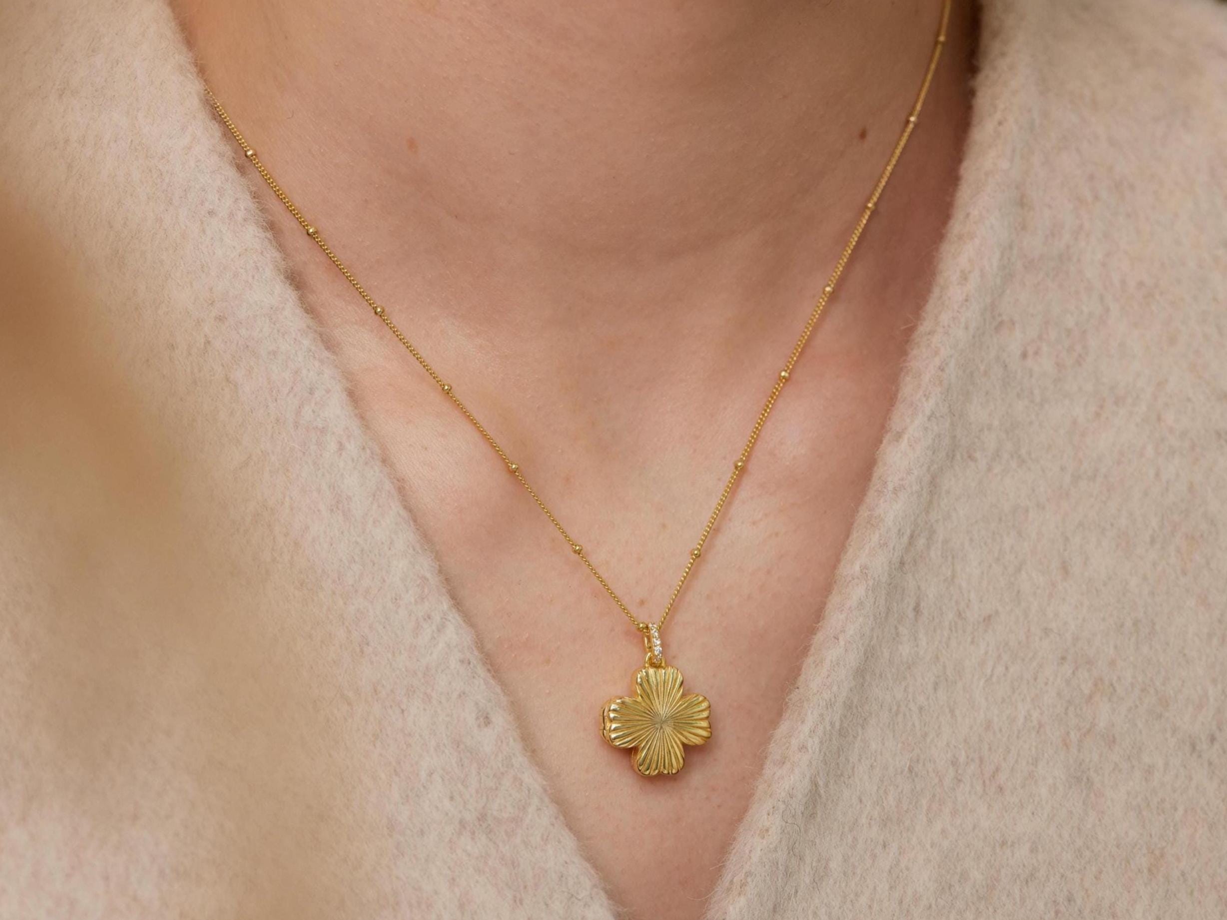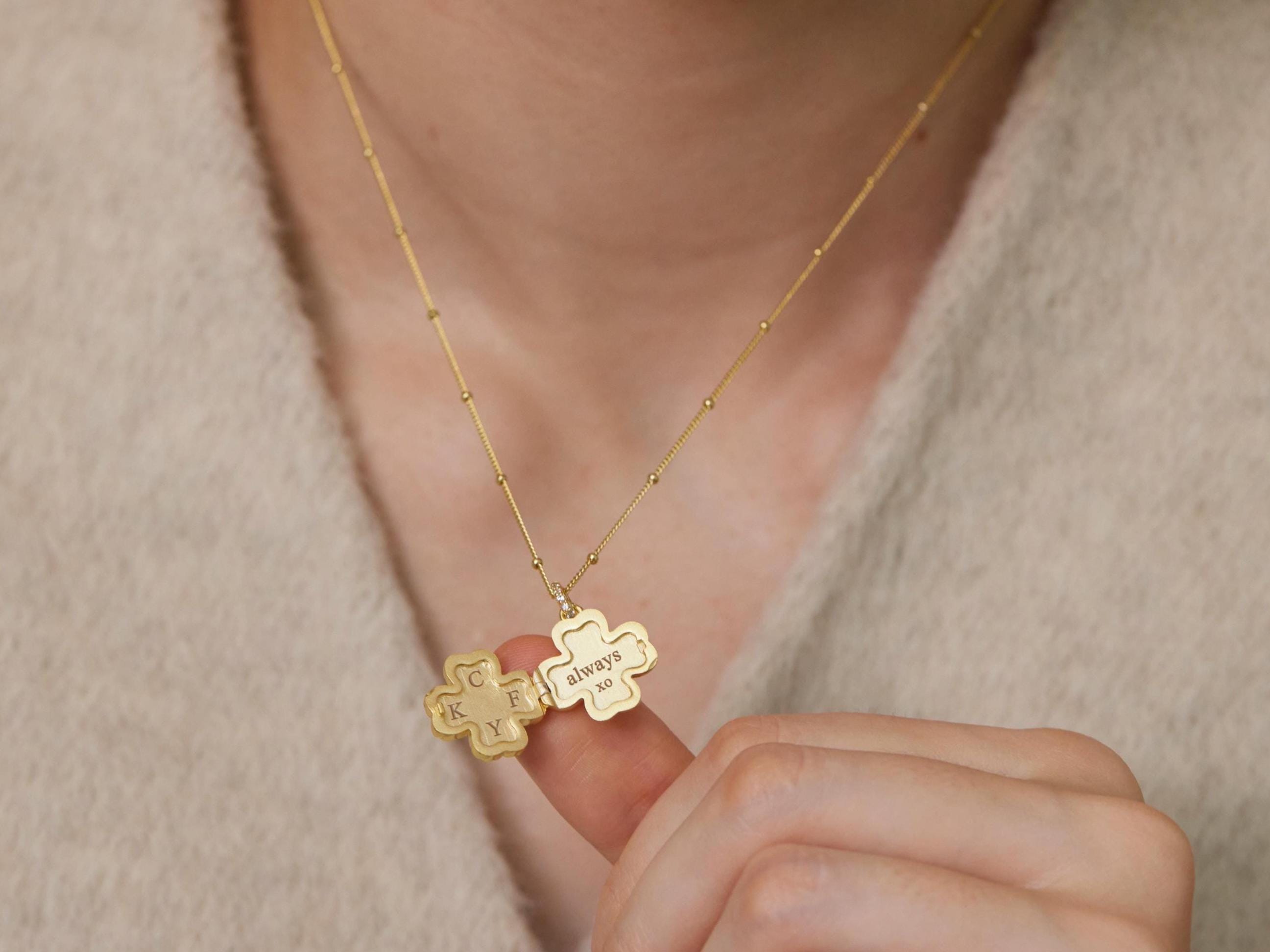 The Lucky Clover Diamond Initial Locket celebrates love, luck, and the beauty of meaningful keepsakes. Inspired by the timeless charm of the four-leaf clover — symbolizing luck, love, hope, and faith — this exquisite piece carries a touch of personalization and sparkle.