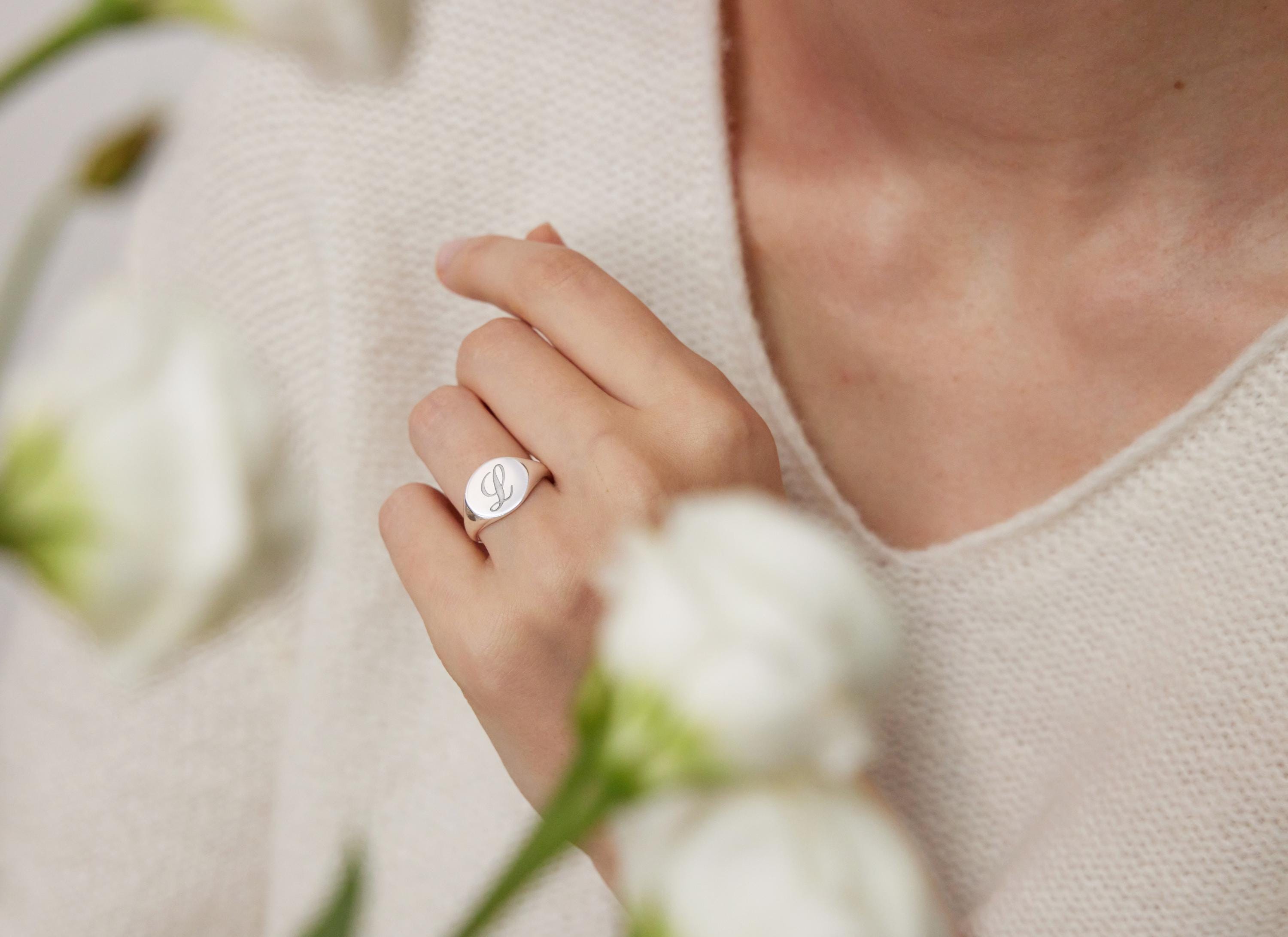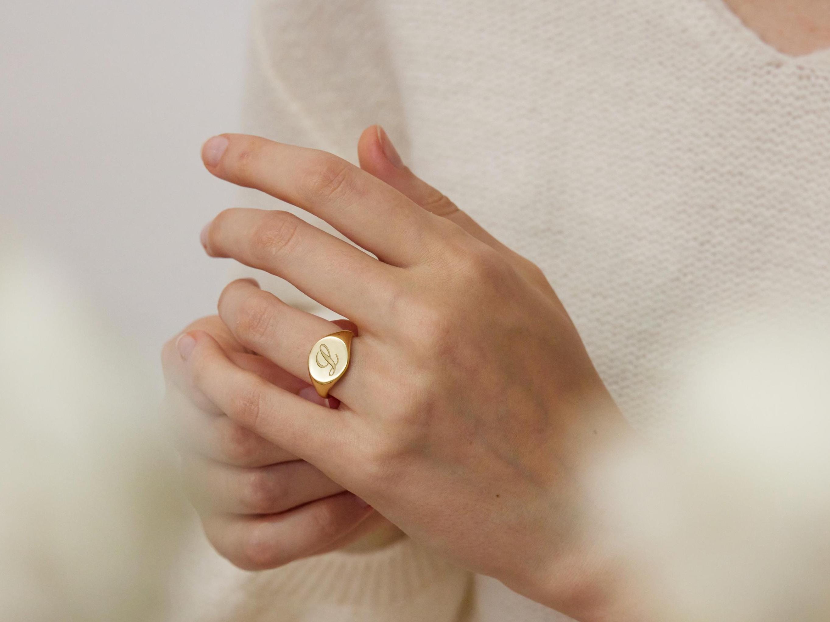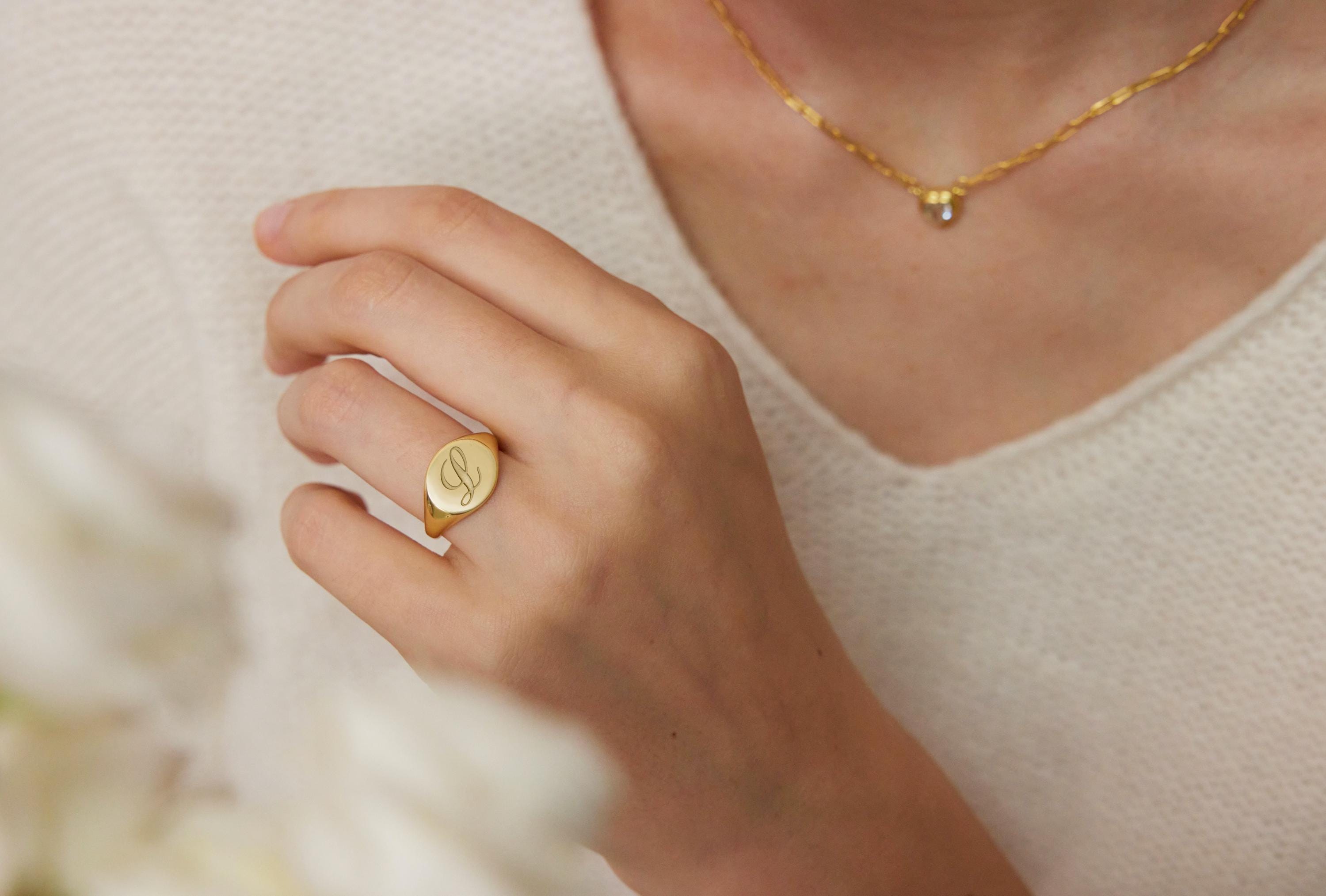 Engraved Initial Signet Ring – Personalized Monogram Jewelry