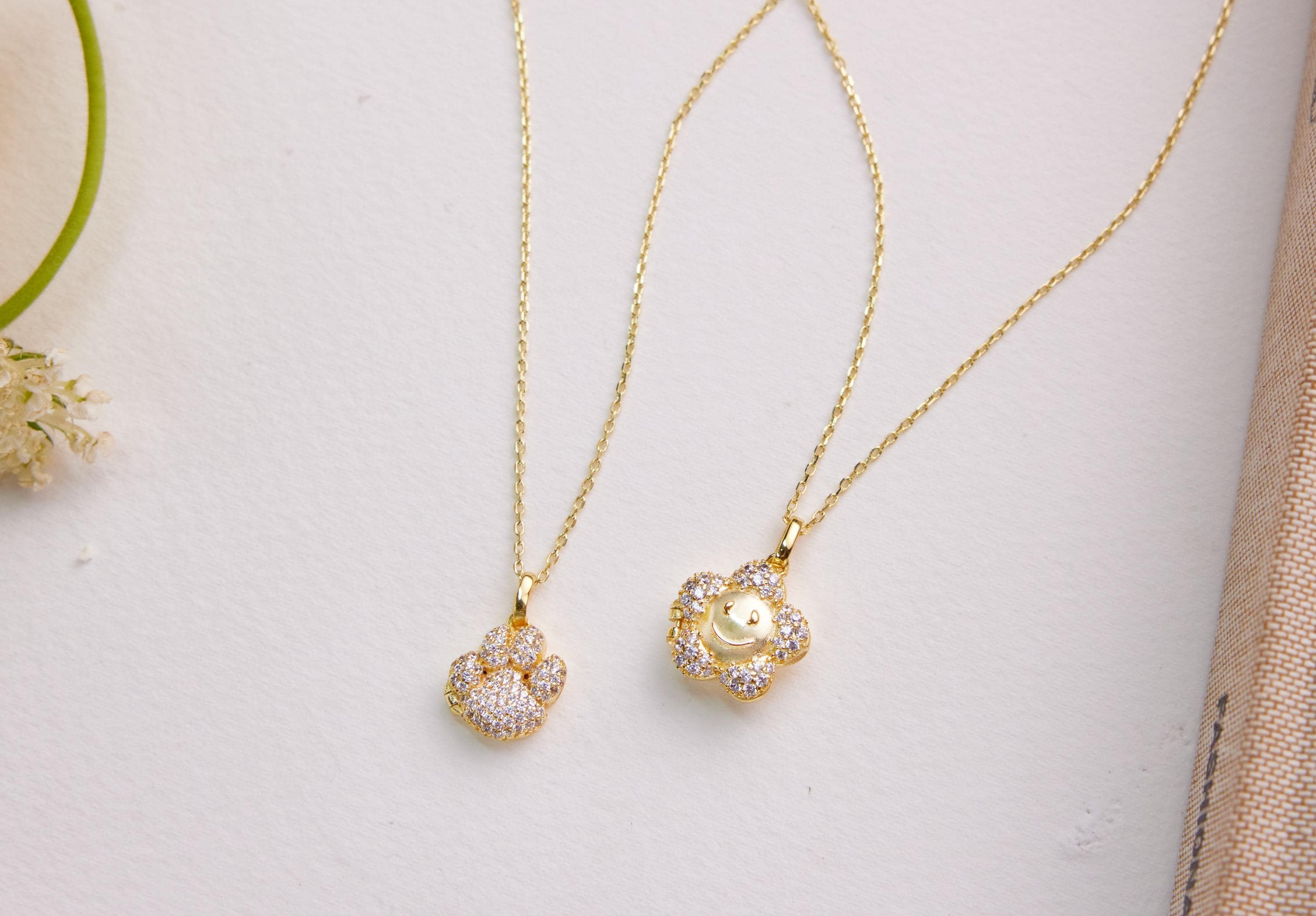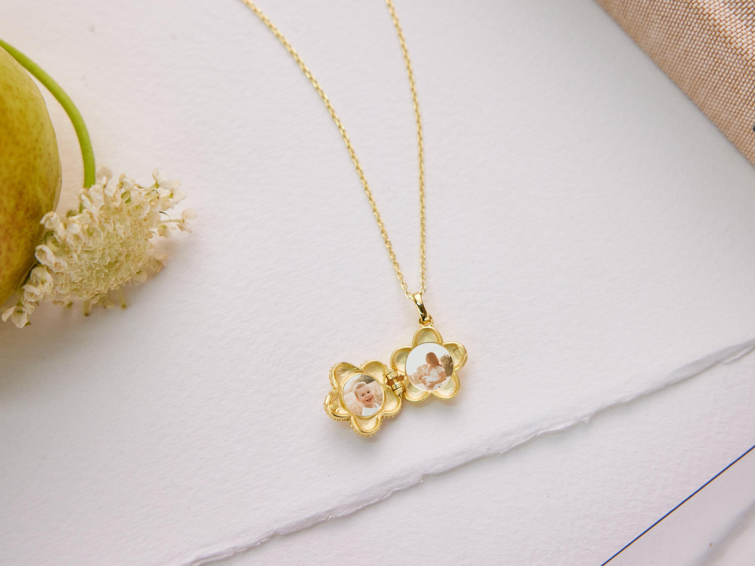 Pavé Flower Smile Photo Locket Necklace