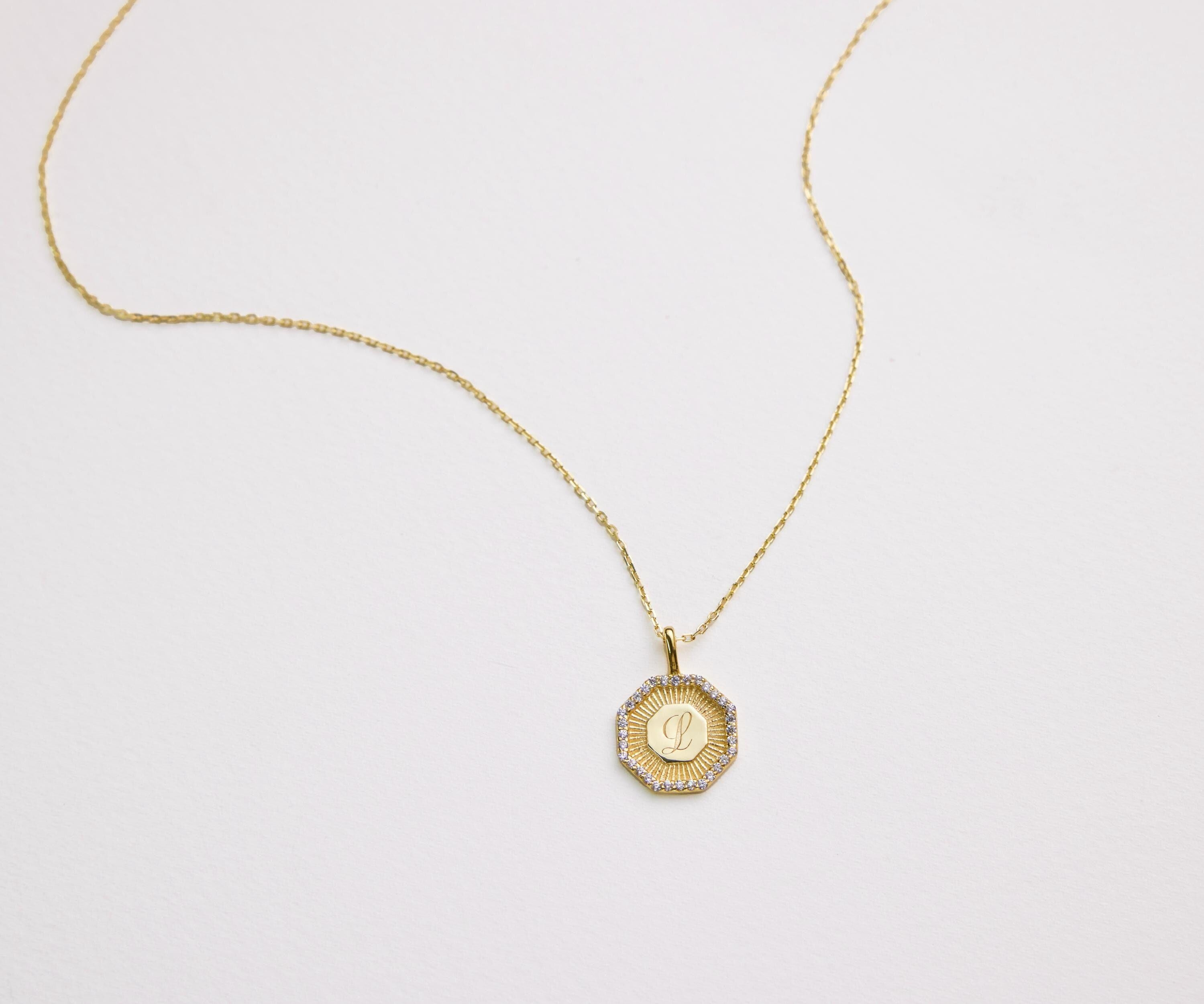 Hexagon Initial Necklace - Pavé Diamond Pendant