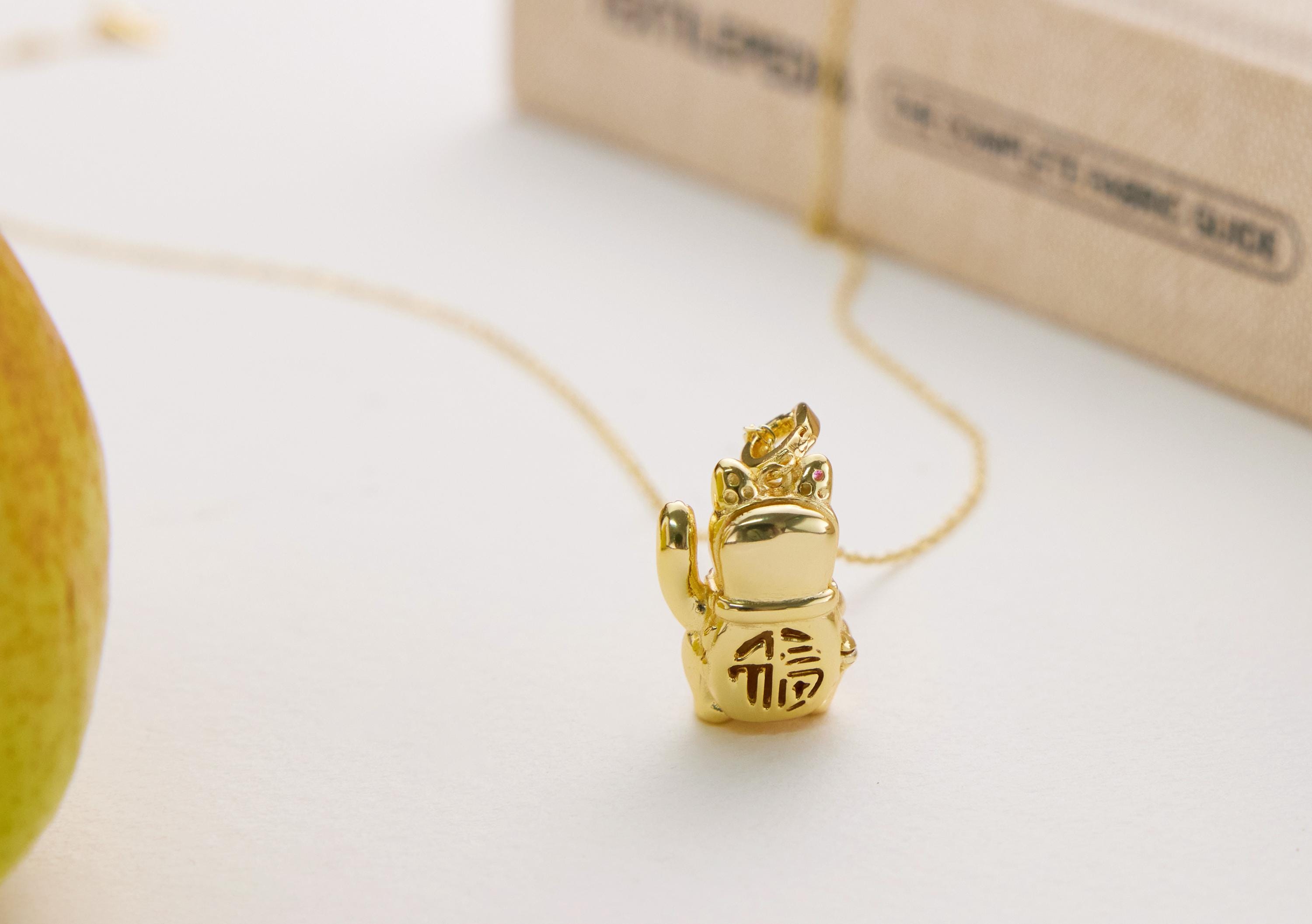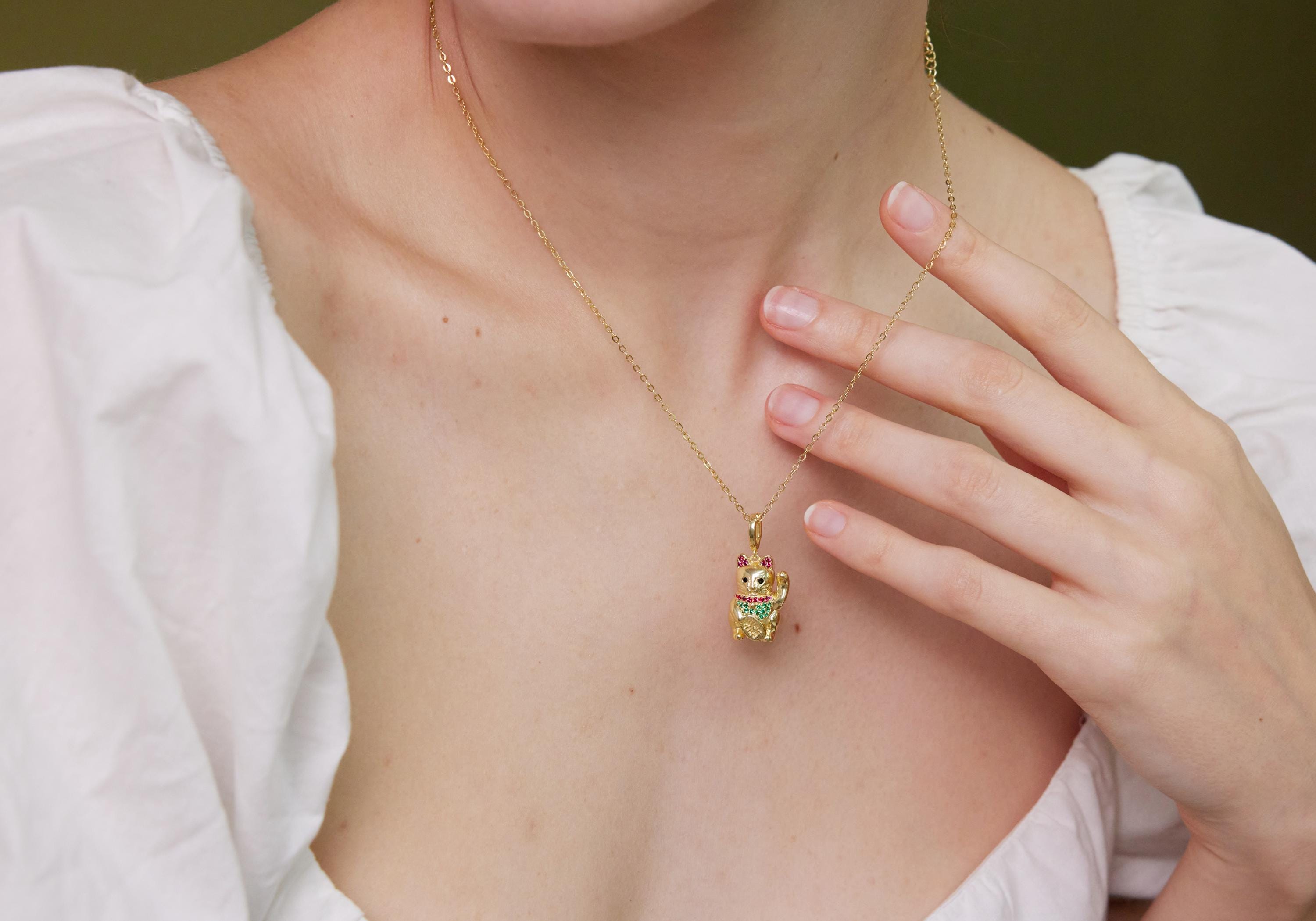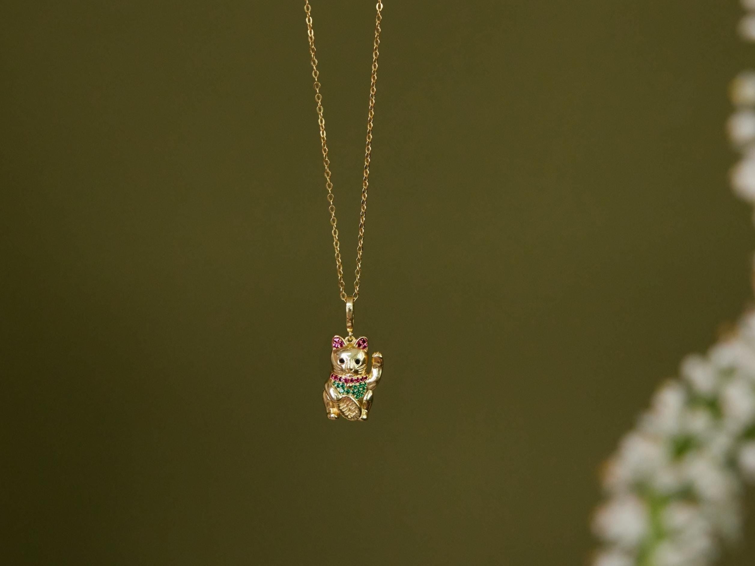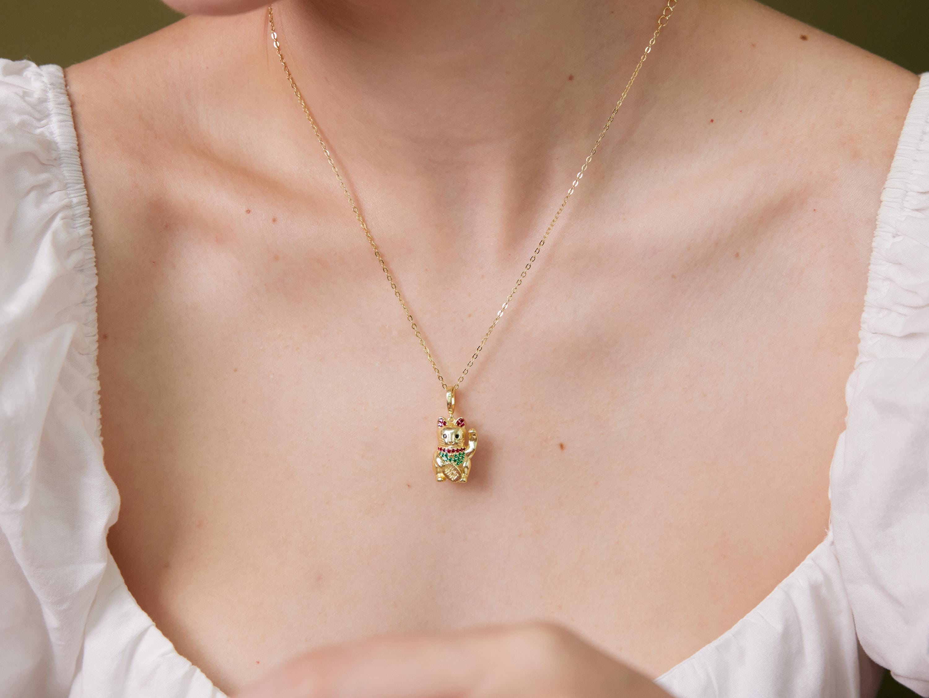Pavé Lucky Cat Pendant Necklace – A Symbol of Good Luck and Positivity