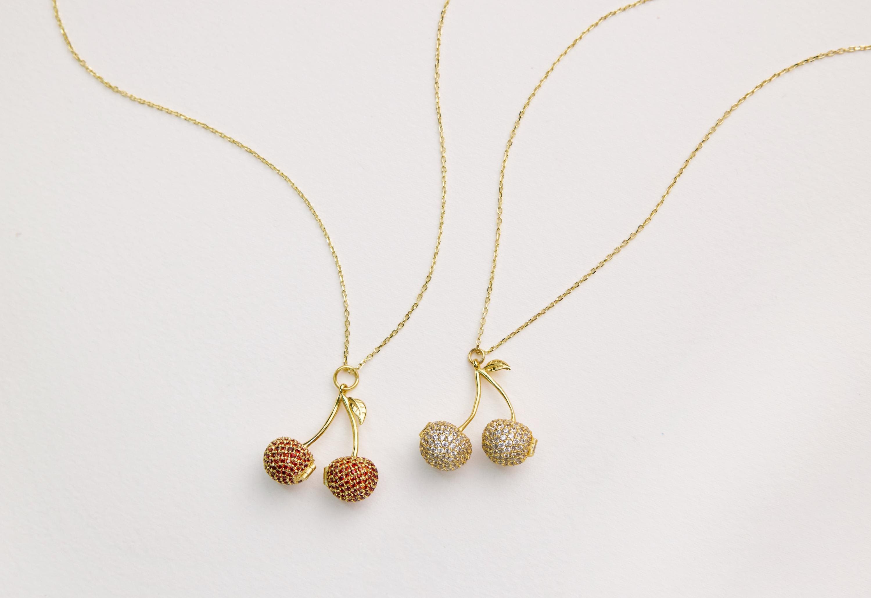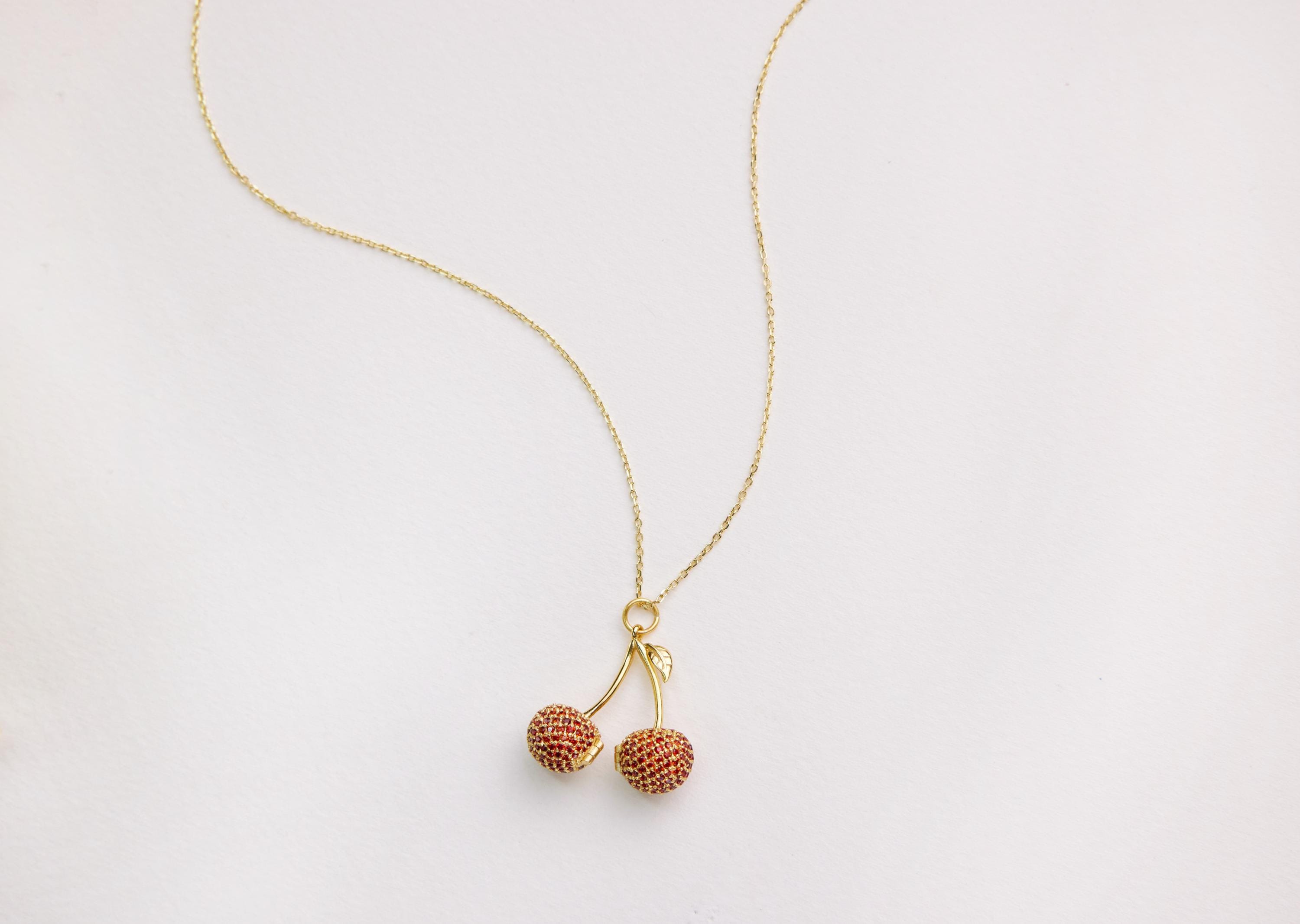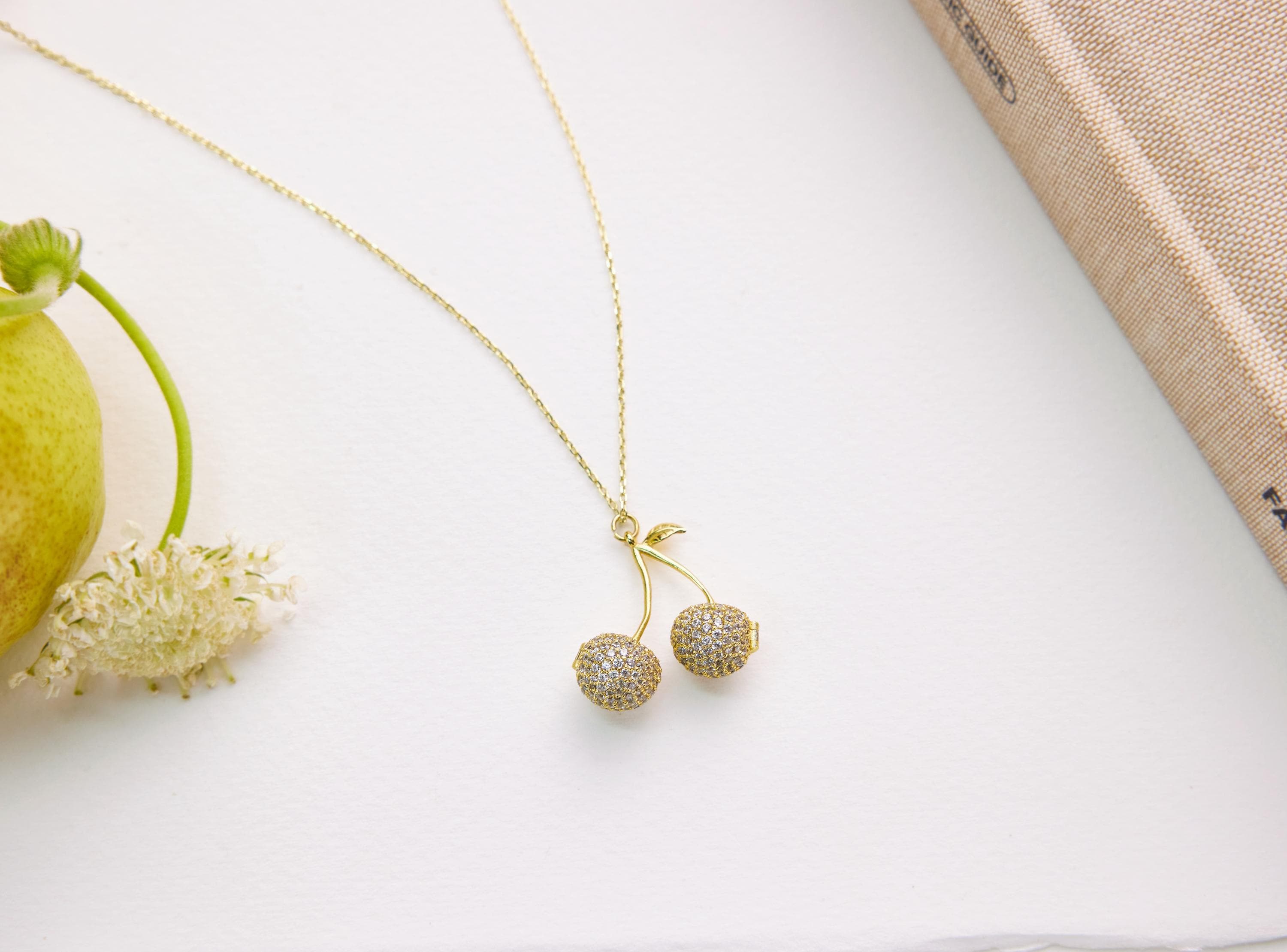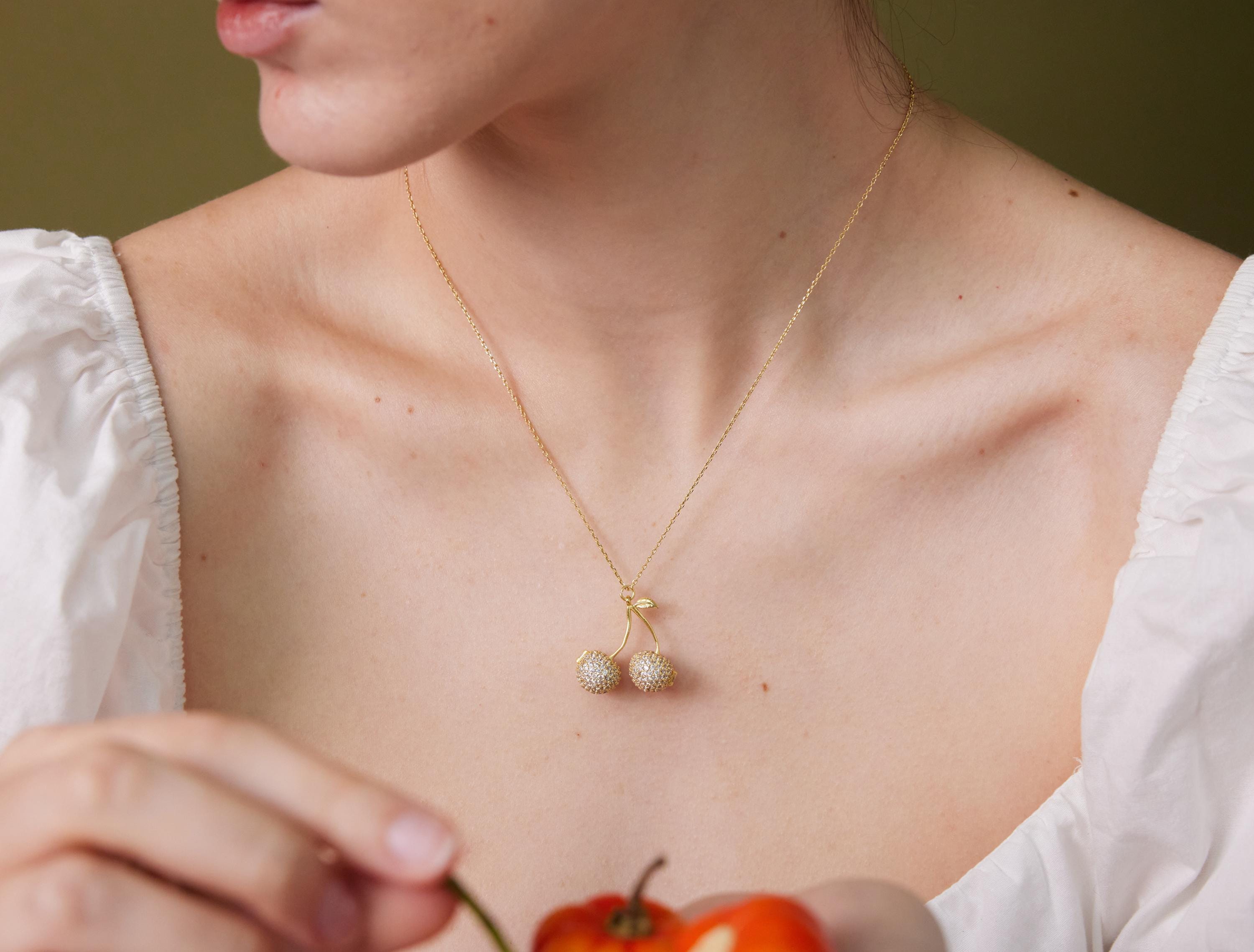 Pavé Cherry Necklace - Dainty Diamond Pendant