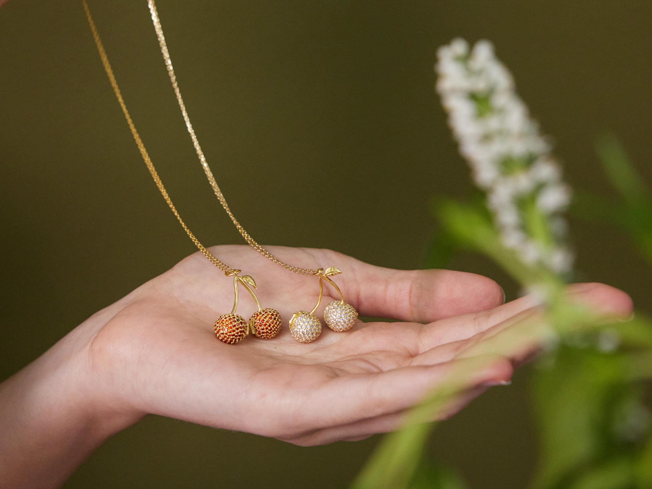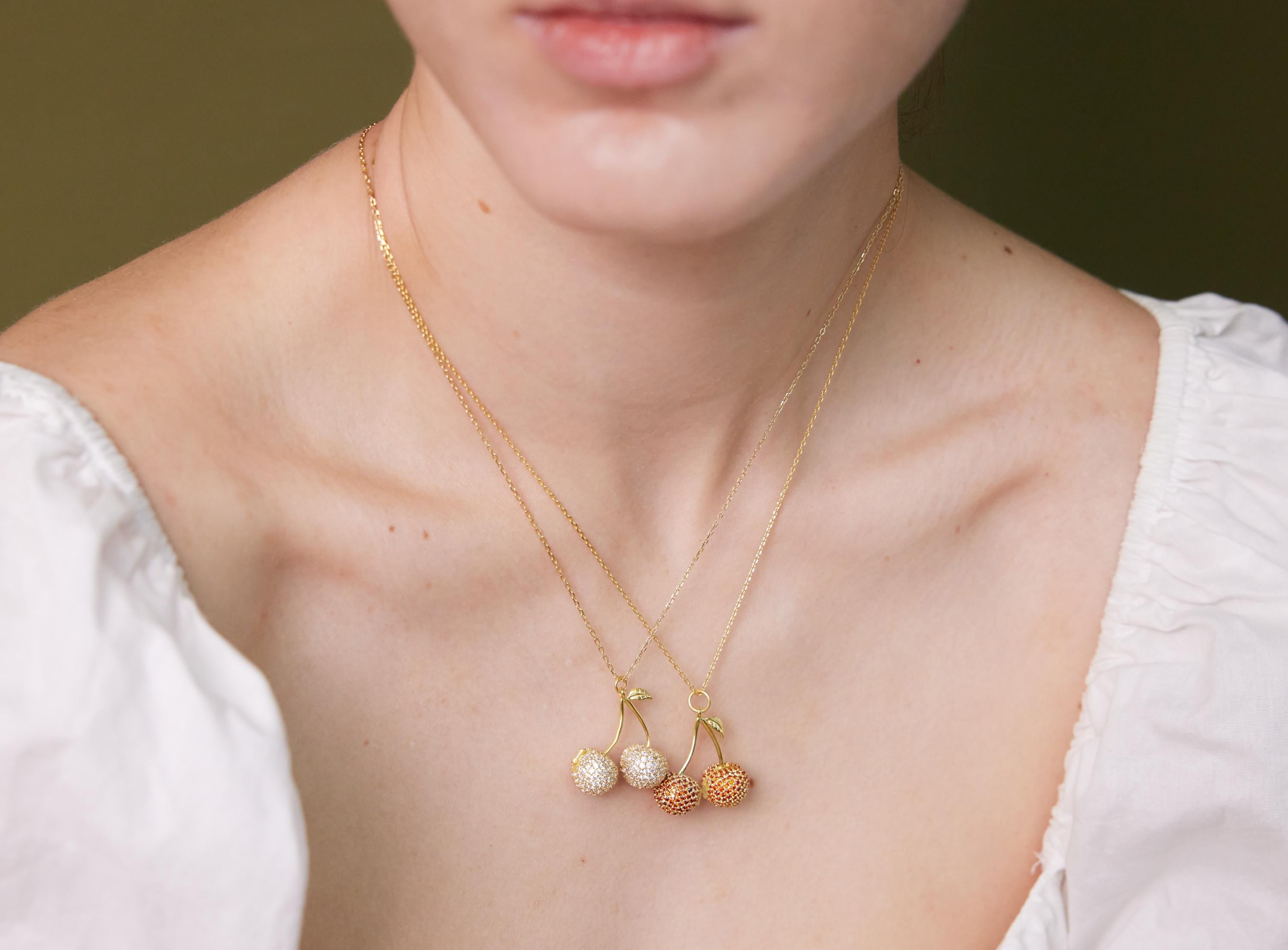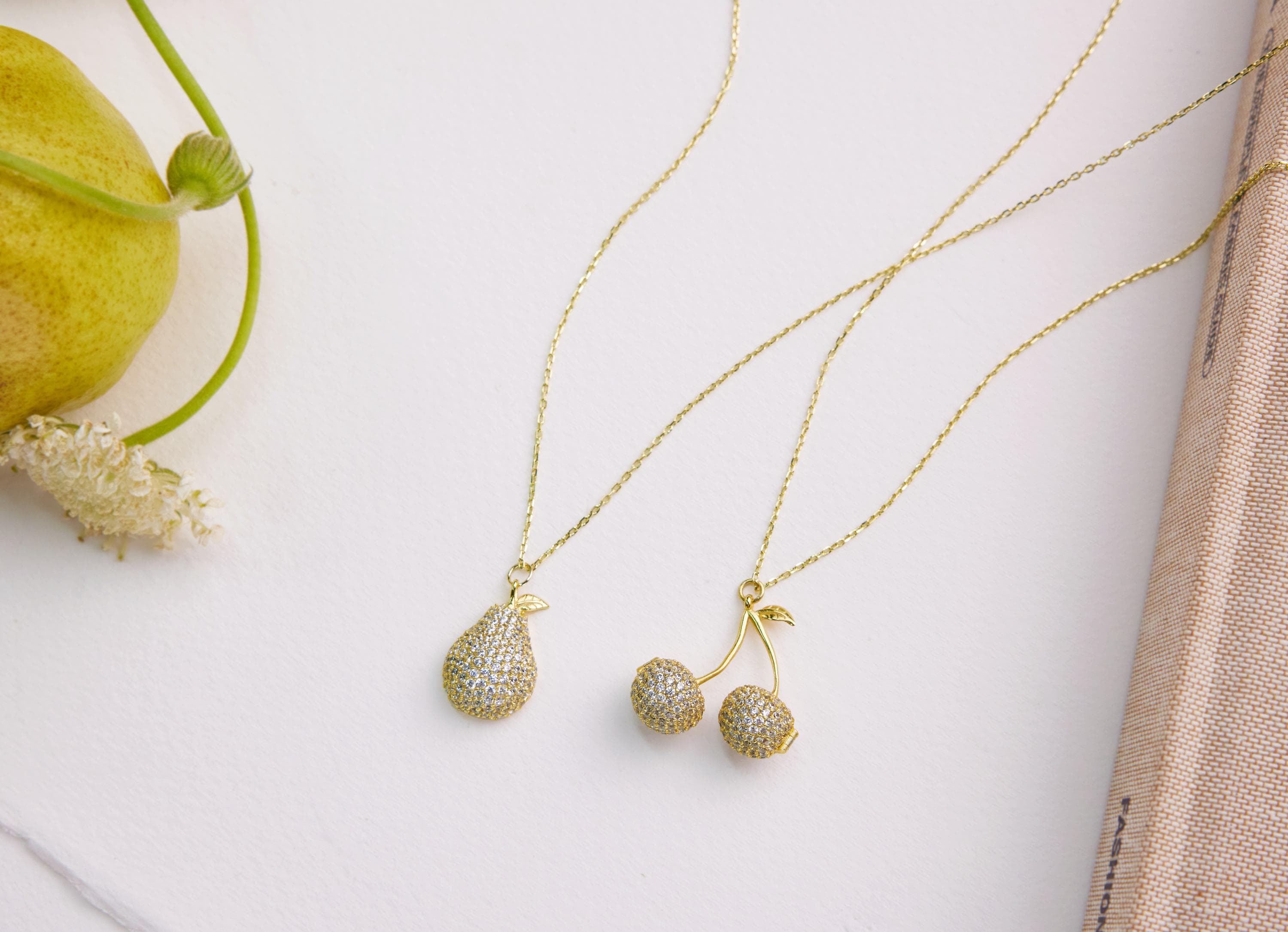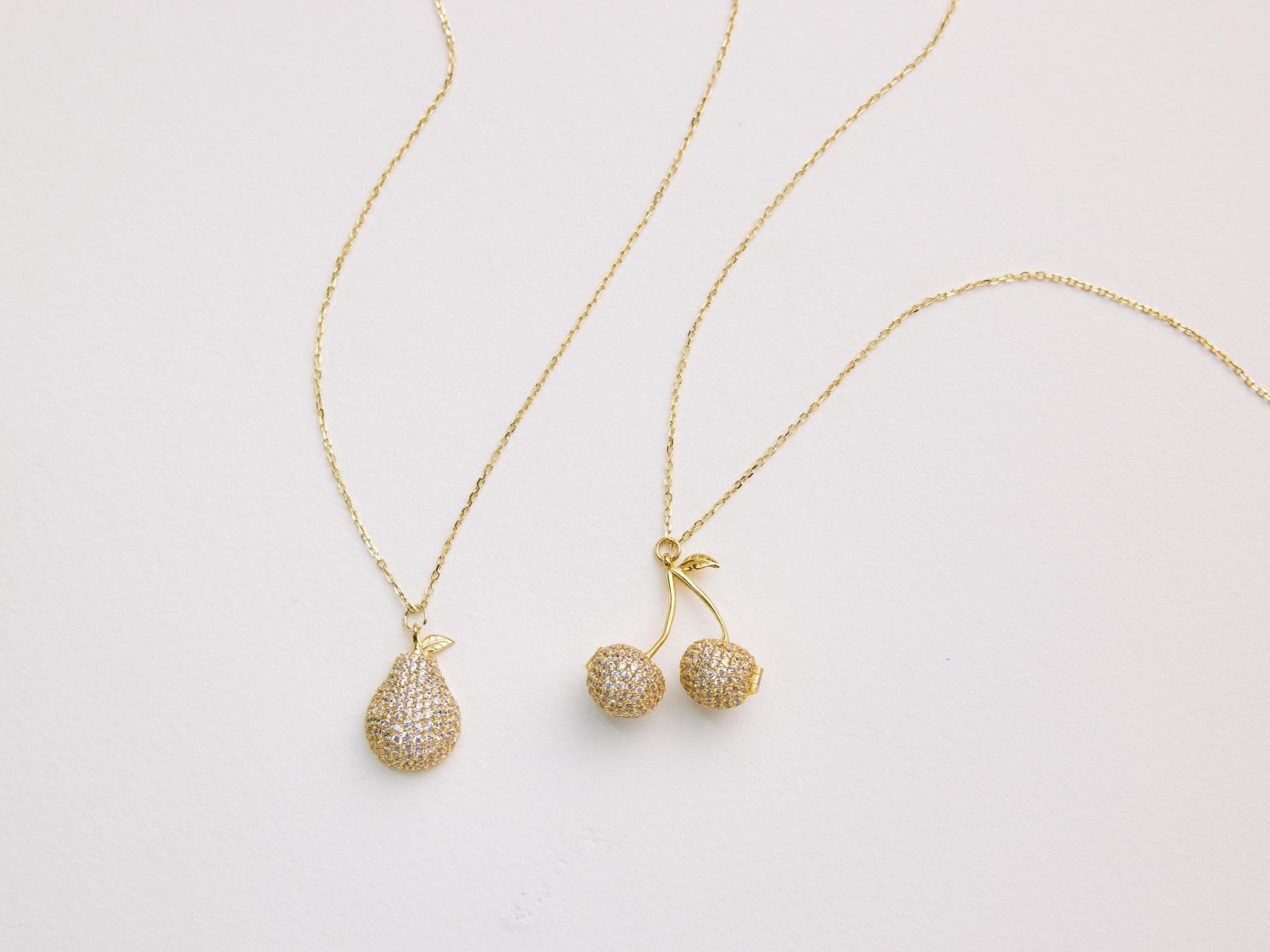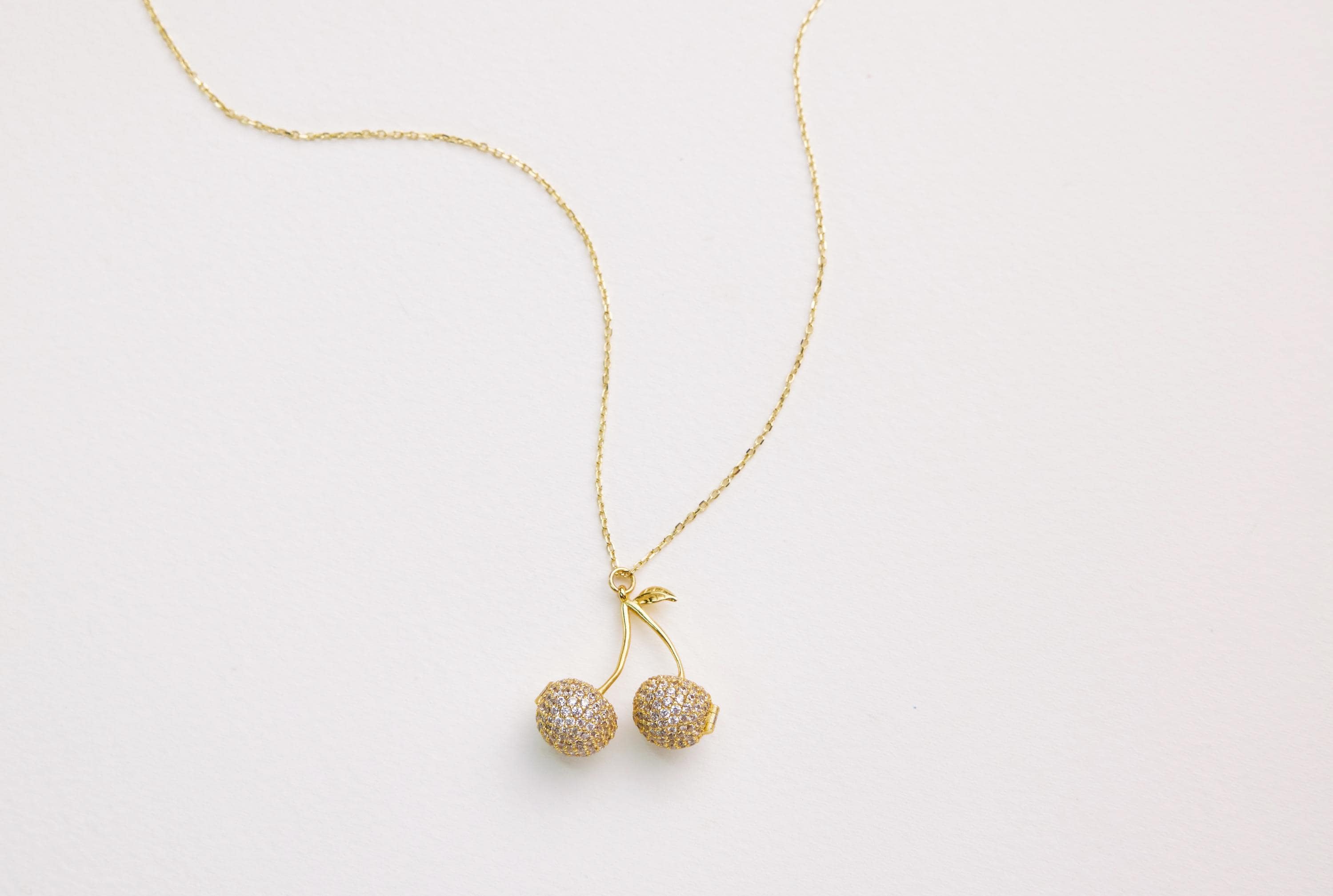 Pavé Cherry Necklace - Dainty Diamond Pendant