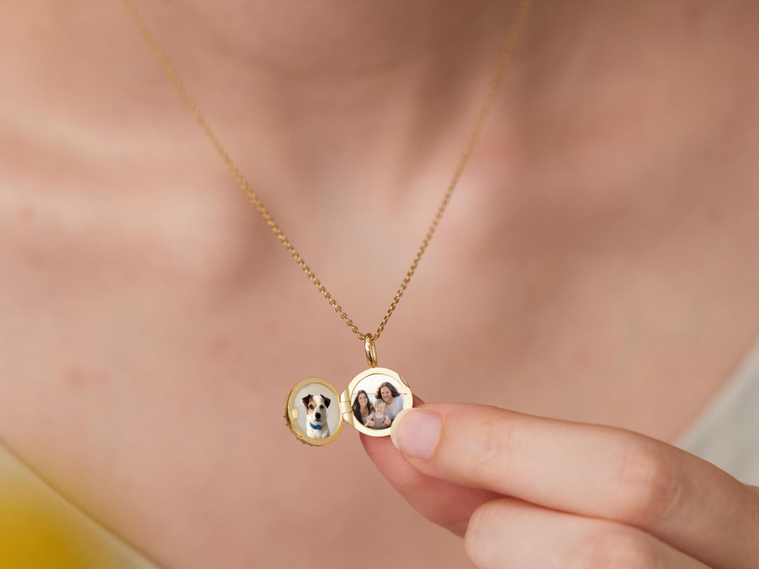 Celebrate your most cherished memories with this Round Pavé Photo Locket Necklace, a timeless keepsake that holds what matters most.