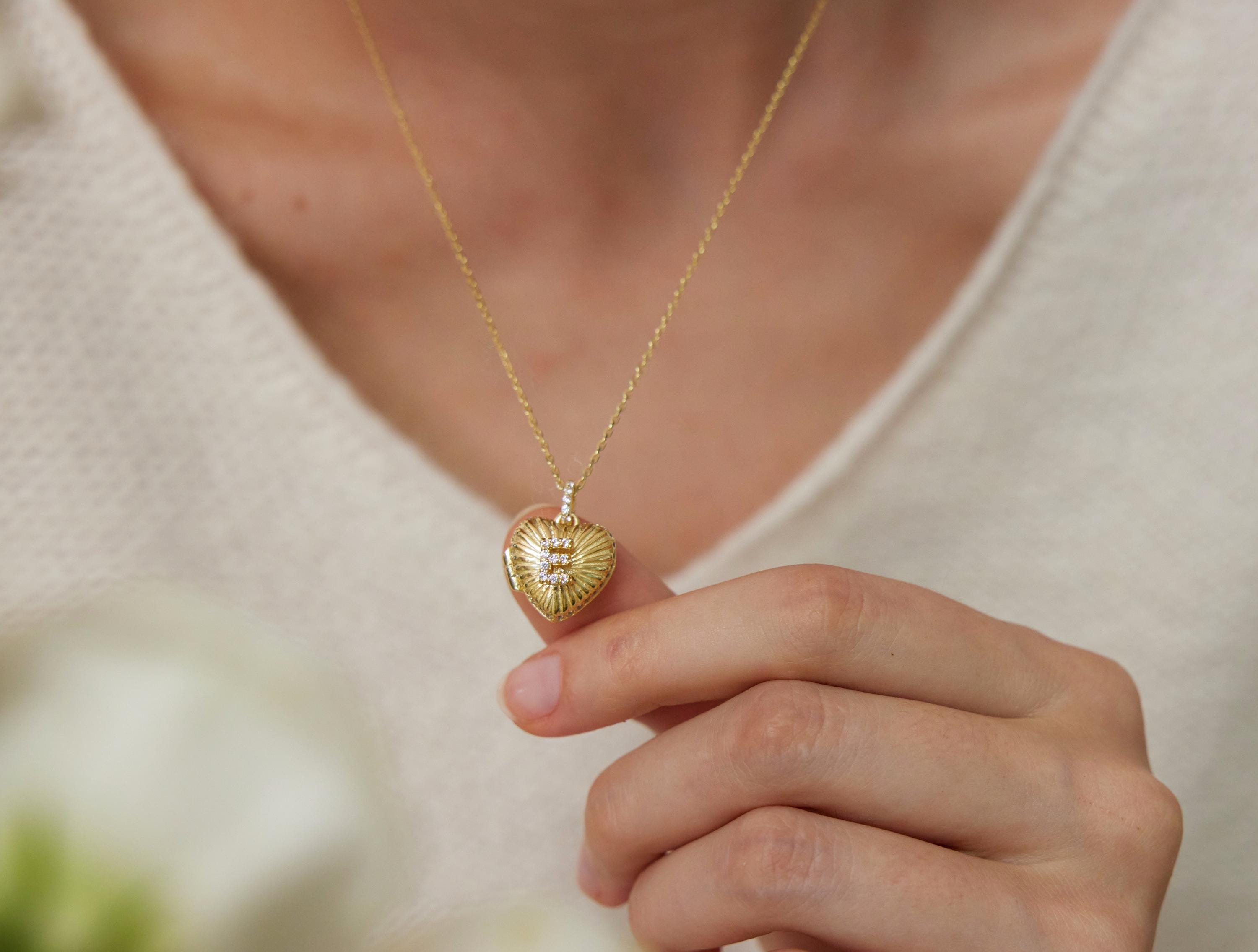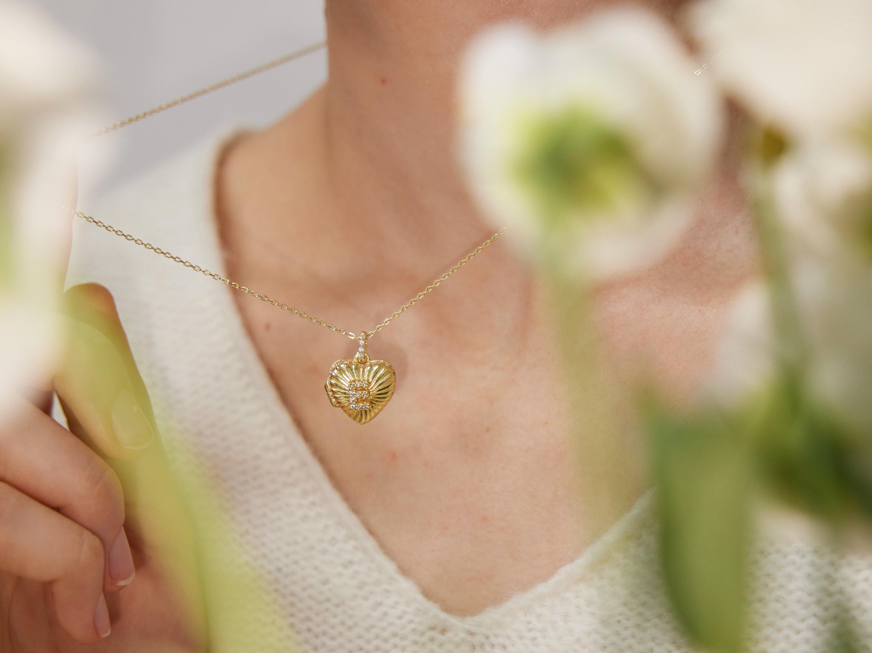 A timeless keepsake reimagined with modern sparkle — the Pavé Sunburst Heart Locket captures light and love in every facet.