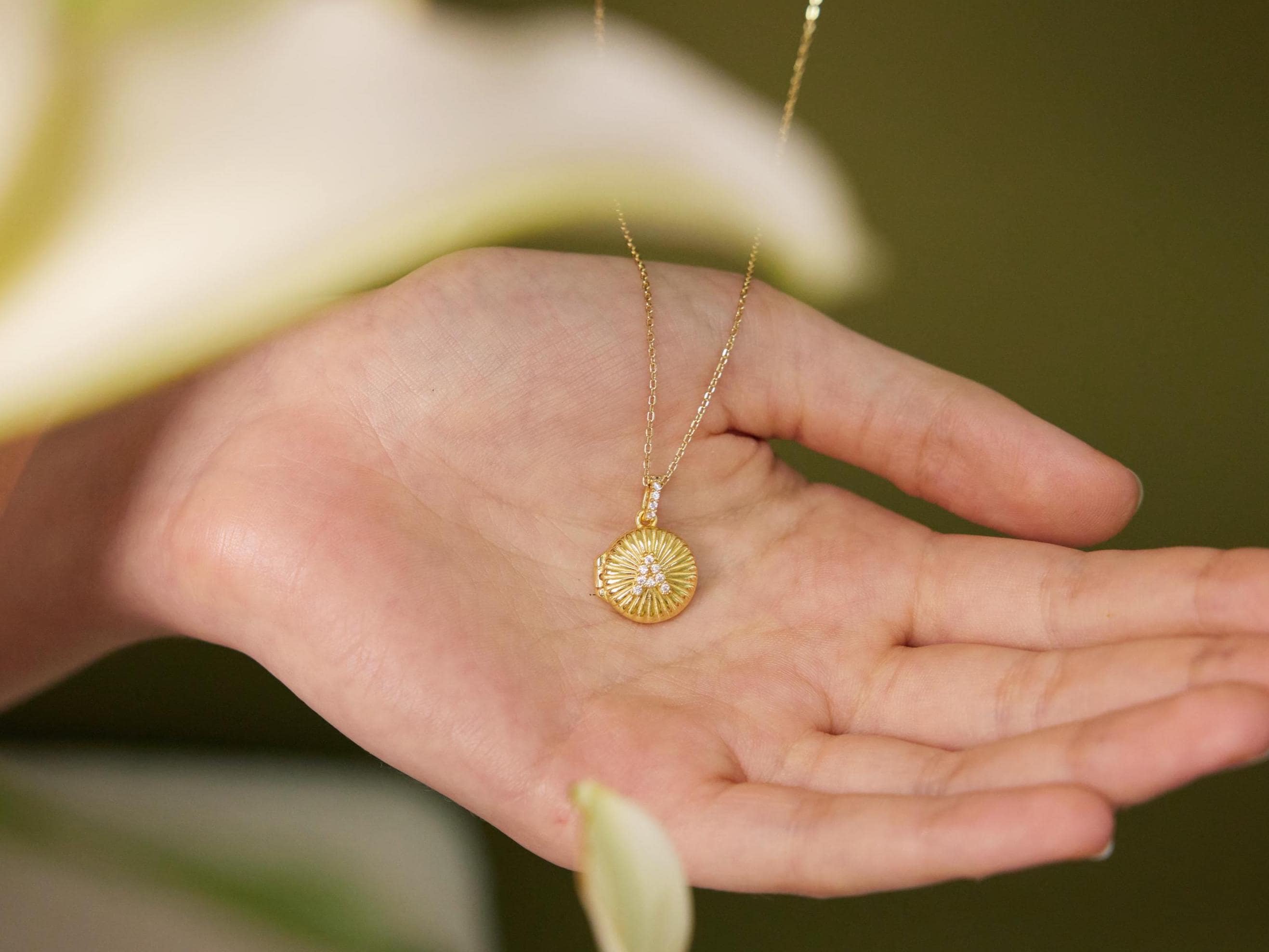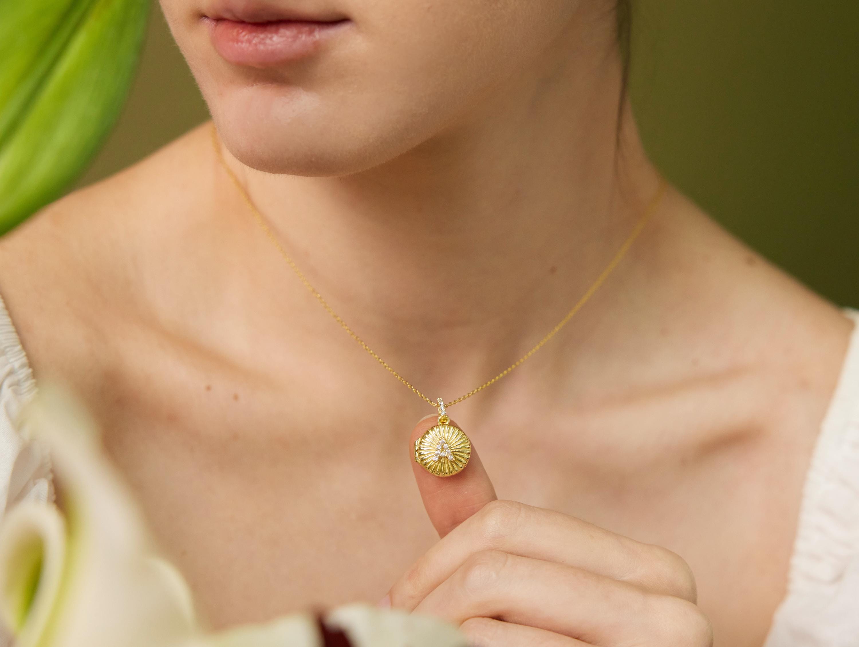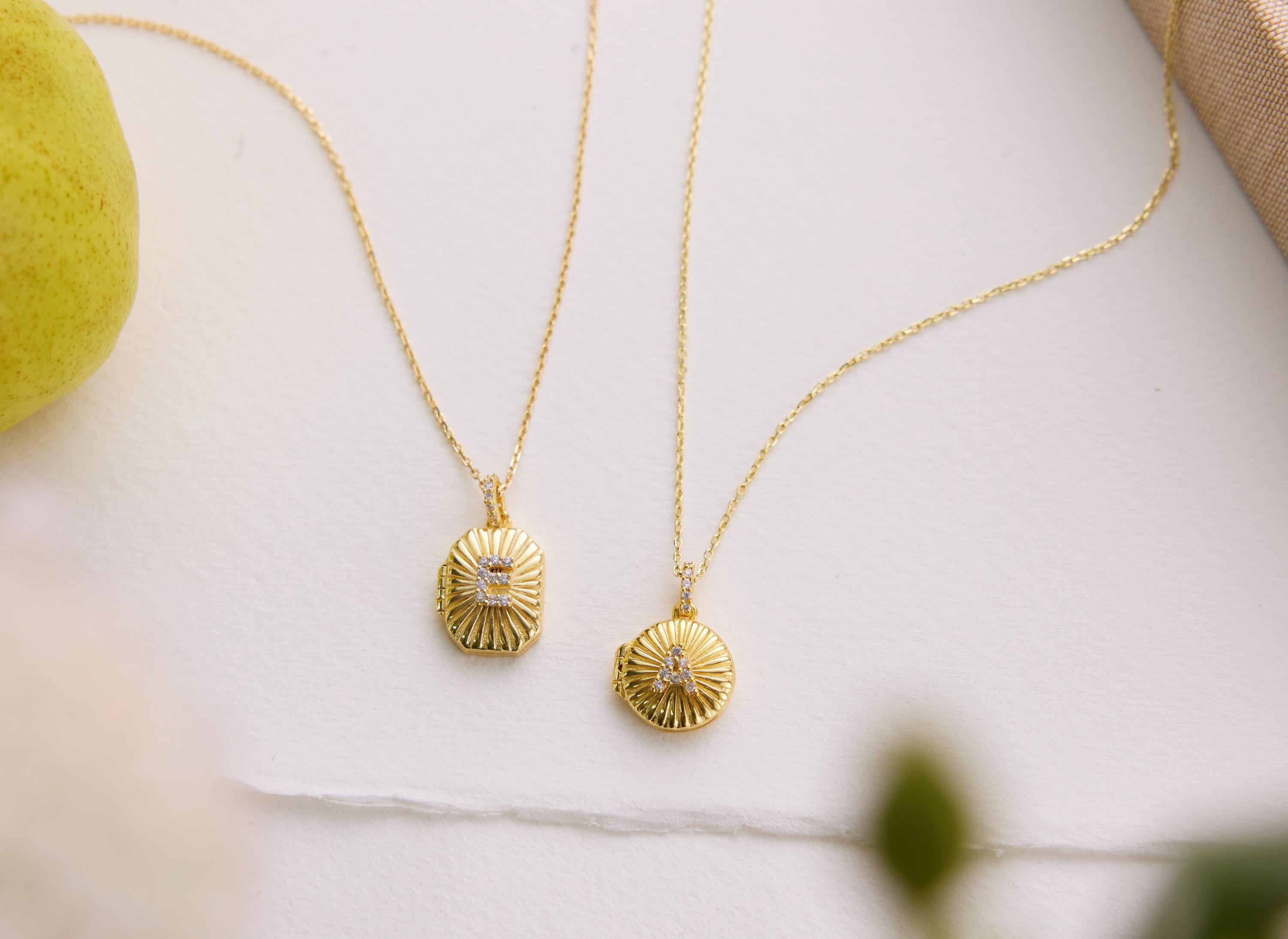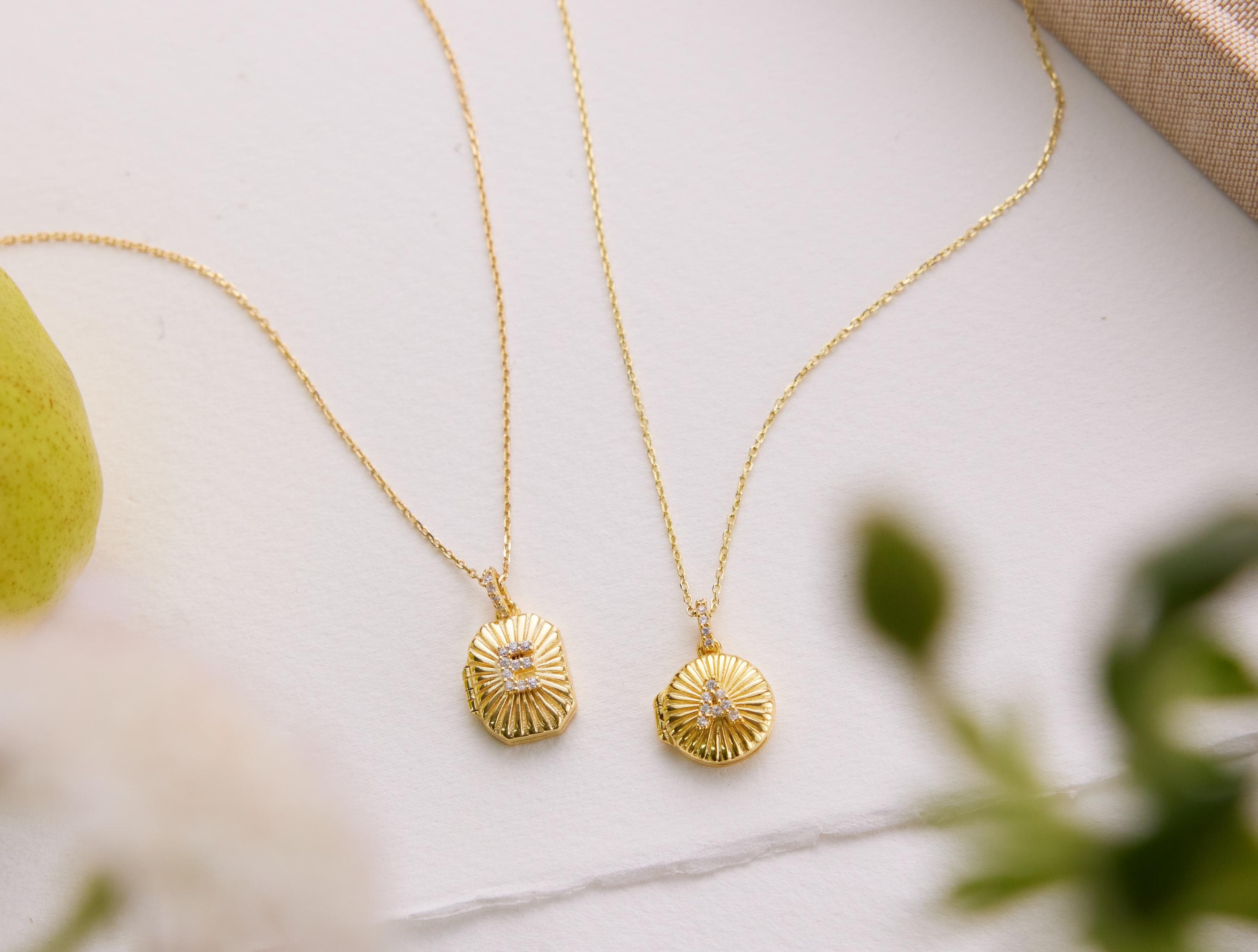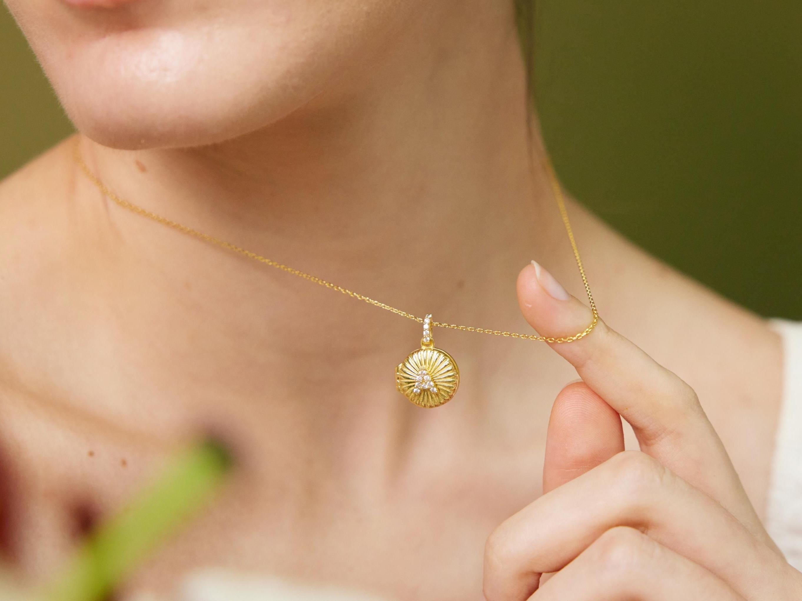 Carry your most cherished memories and a symbol of your personal style with this elegant Round Pavé Diamond Initial Locket. Featuring a beautifully crafted round design with sunburst detailing, this locket is a unique way to keep a photo or special message close to your heart. The front is personalized with a pavé-set diamond initial (A-Z) for a subtle yet radiant sparkle. Whether worn every day or saved for special occasions, this customizable locket is designed to become a cherished heirloom.