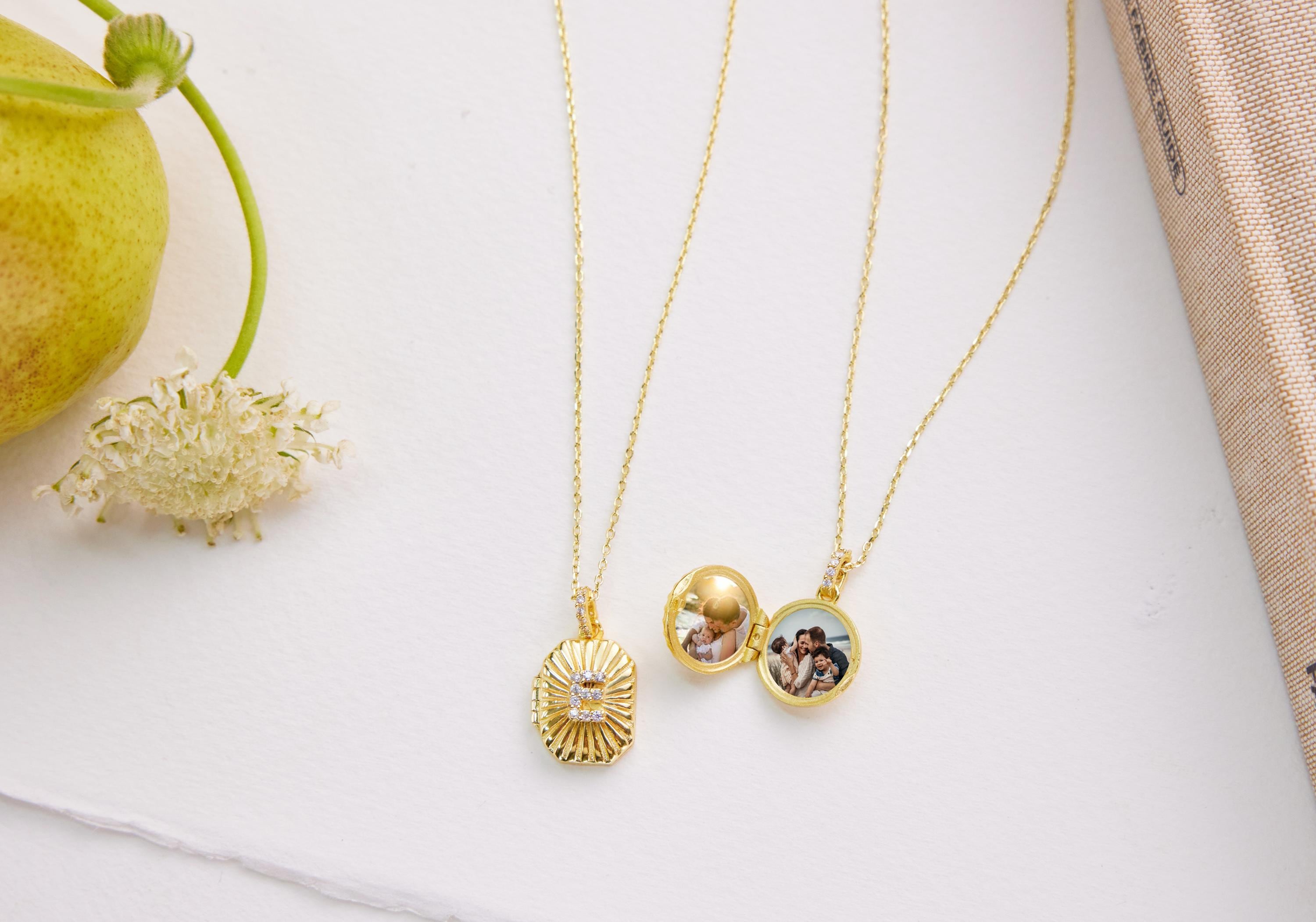 Round Pavé Initial Locket - Personalized Photo Necklace