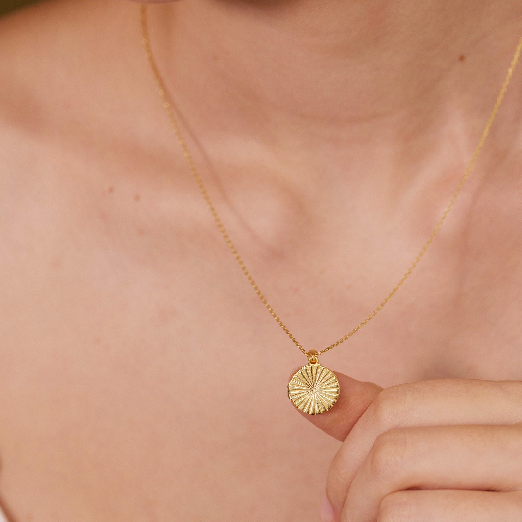 The Sunburst Locket Necklace is inspired by the sun’s radiant energy and the promise of new beginnings. Its sunburst design symbolizes hope, renewal, and the transformative power of each new day. This locket is a meaningful keepsake, crafted to hold your cherished memories close. It’s a reminder of the light within you, celebrating life’s moments of growth, love, and change. A timeless piece, perfect for honoring your journey or gifting someone special.