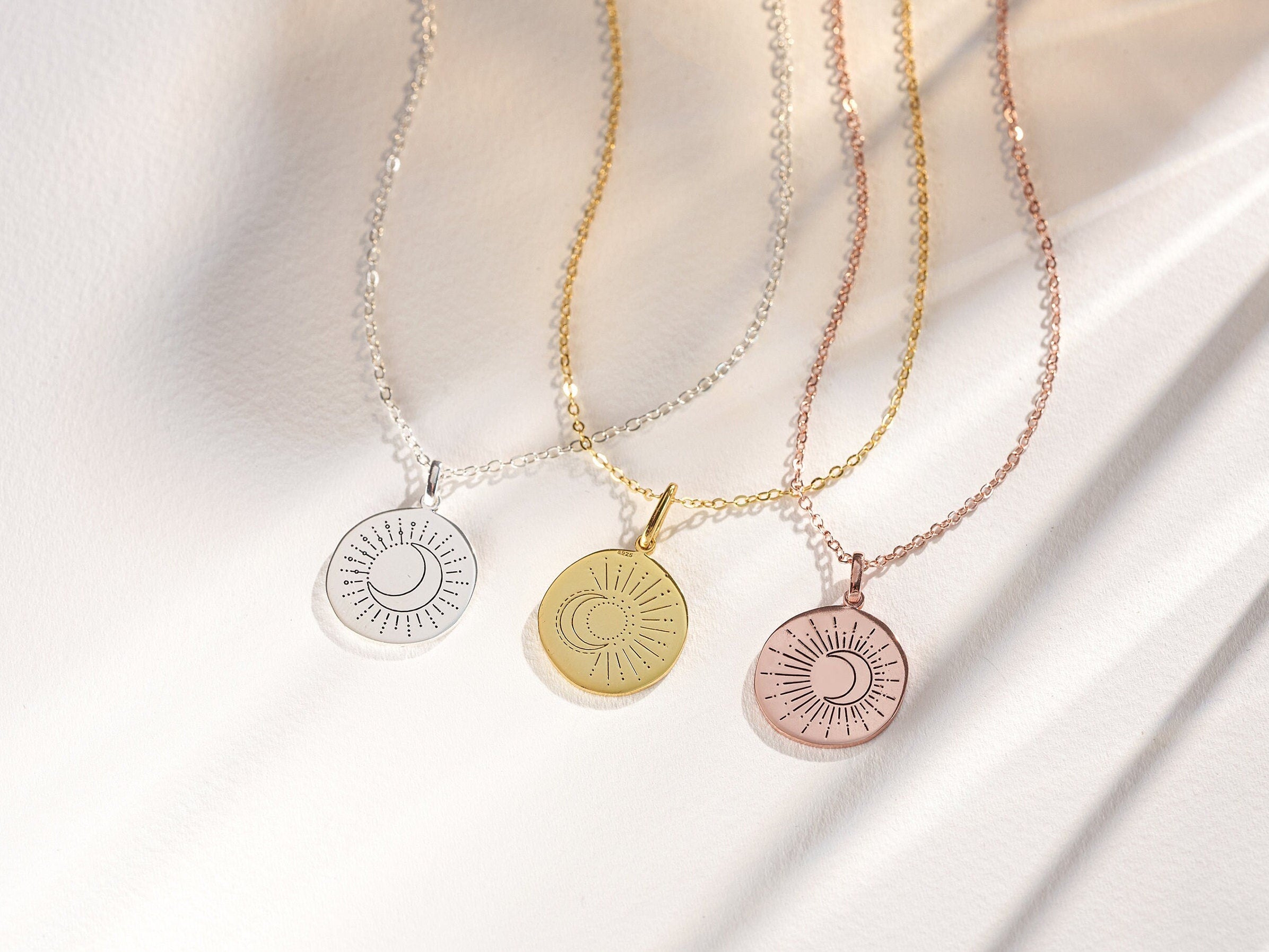 Moon Sunburst Necklace - Personalized Engraved Sterling Silver
